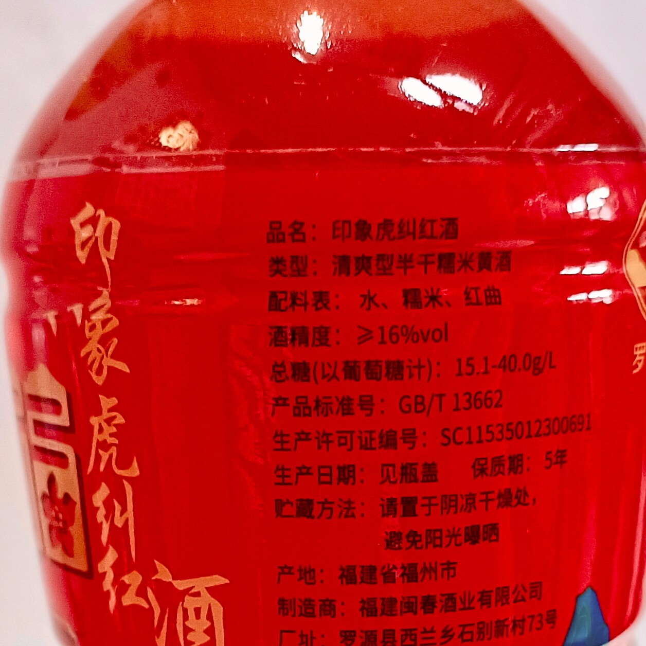 淘宝福建特产红酒糯米酒月子酒福州黄酒印象虎纠红酒红曲酒料酒