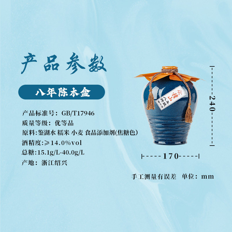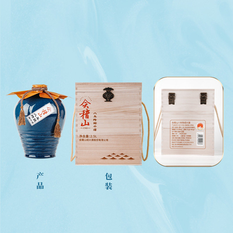 天猫会稽山绍兴黄酒木盒八年陈酿2.5L坛装半干黄酒礼盒装花雕老酒送礼