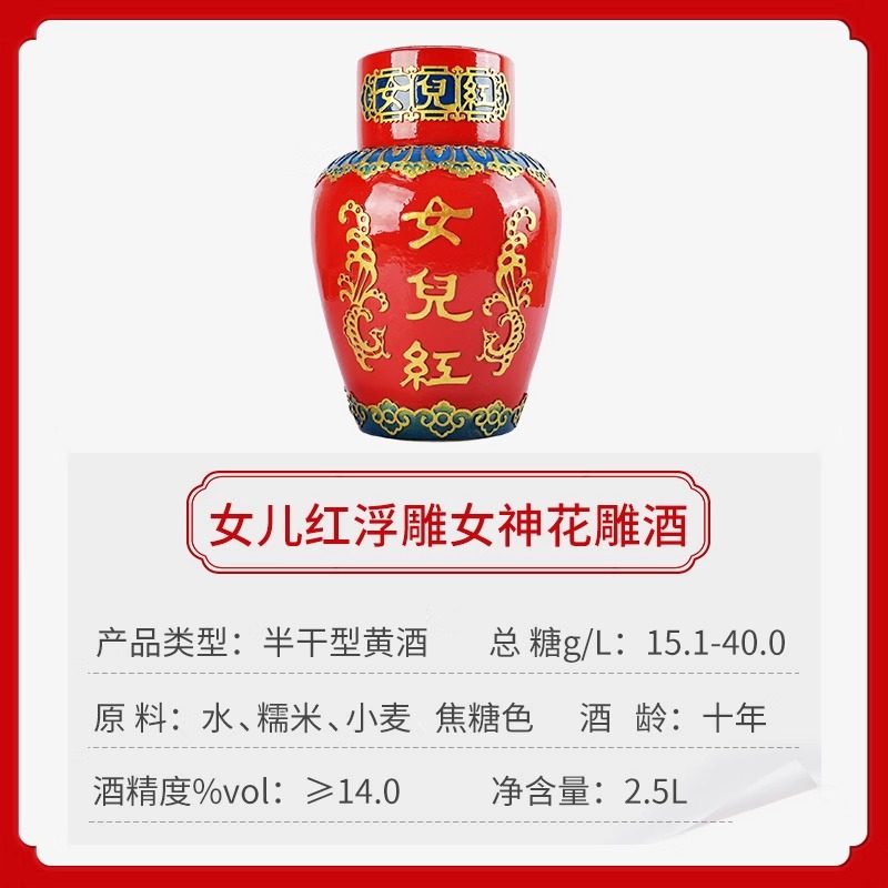 天猫女儿红黄酒绍兴黄酒手工浮雕十年陈绍兴花雕酒女神花雕2.5L坛装