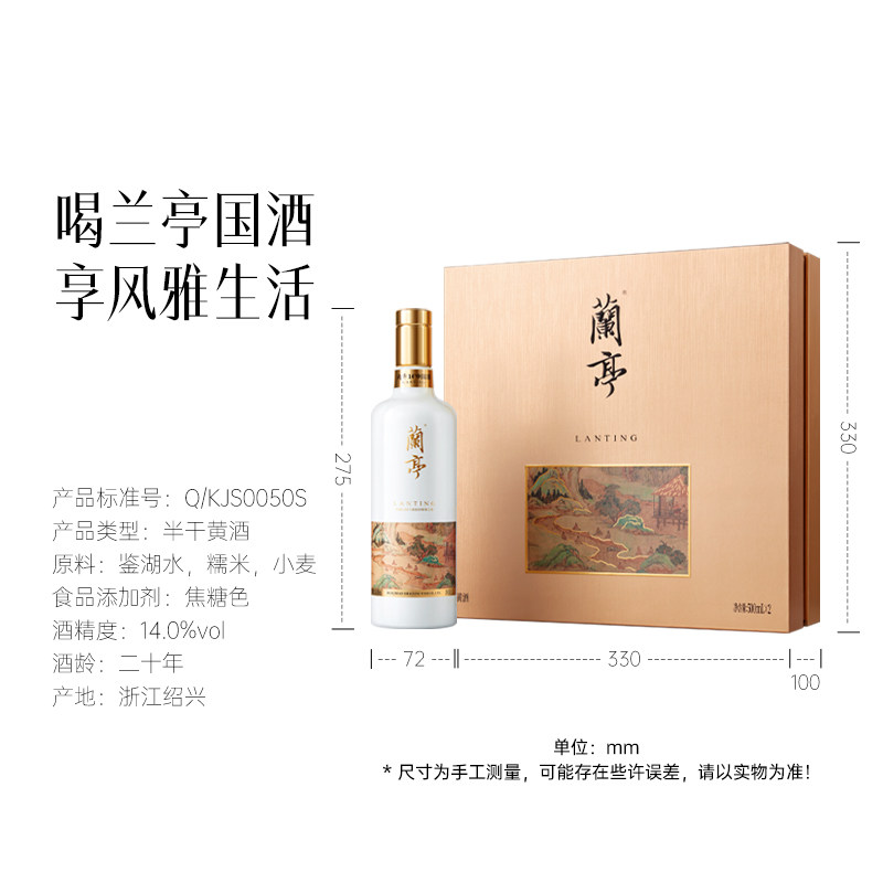 会稽山官方出品的国潮兰亭黄酒,精选优质糯米与鉴湖水系,传承古法酿造工艺,经20年陈酿而成。酒体醇厚甘润,色泽琥珀透亮,香气馥郁,口感绵柔回甘,尽显绍兴花雕酒之精髓。500mL×2瓶装搭配高档礼盒,设计融合兰亭雅集文化与现代国潮元素,典雅大气,彰显东方韵味。无论是自饮品鉴,还是馈赠亲友、商务礼赠,皆显品味与诚意。作为绍兴黄酒的代表之作,国潮兰亭不仅传承千年酒文化,更以创新姿态焕发时代光彩,是传统与现代完美交融的佳酿典范。