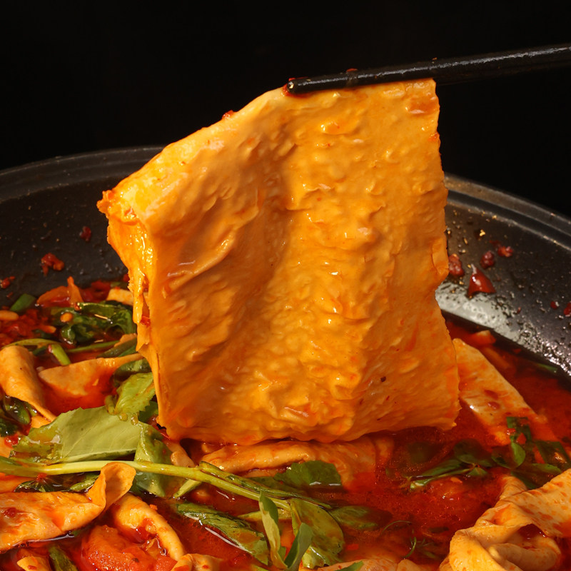 贵州铜仁特产手工豆腐皮,选用当地优质非转基因大豆,传承古法工艺精制而成。全干无盐处理,保留大豆天然醇香,口感柔韧有嚼劲,久煮不烂。作为火锅、炒菜、凉拌的上佳食材,可吸收汤汁精华,风味独特。其色泽金黄透亮,营养丰富,富含植物蛋白,是素食者及追求健康饮食人群的理想选择。不同于普通腐竹,铜仁老豆皮质地更厚实,豆香浓郁,亦有“人造肉”之称。纯天然制作,无添加剂,既保留传统风味,又契合现代健康理念,是贵州山地美食文化的地道代表,深受食客喜爱。