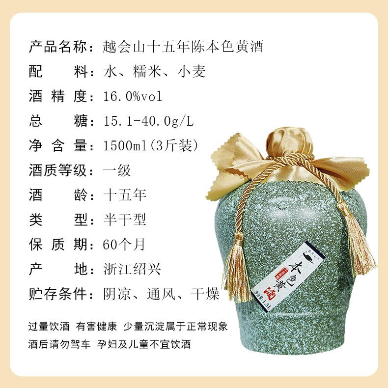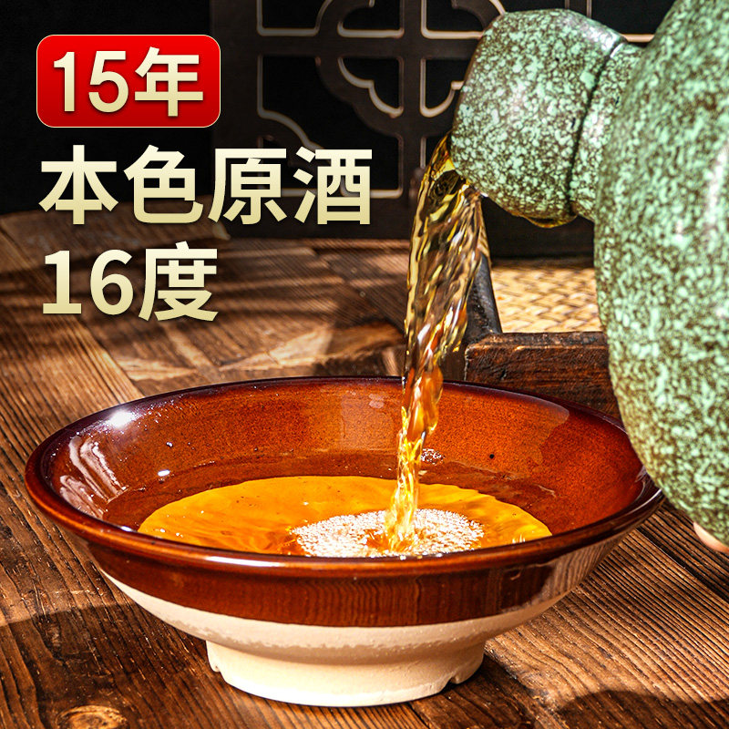 淘宝15年陈正宗绍兴老黄酒无焦糖色低糖糯米酒16度3斤坛装本色花雕酒