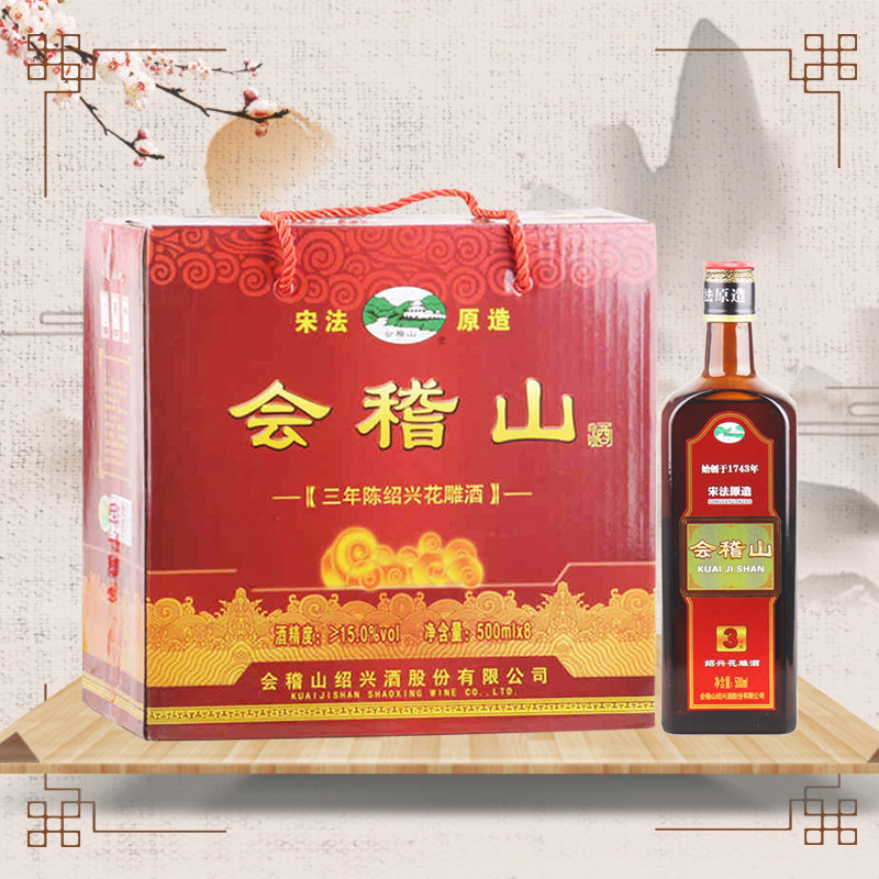 天会稽山绍兴黄酒旗舰店 纯正三年陈500ml*8糯米花雕酒正宗绍兴老酒