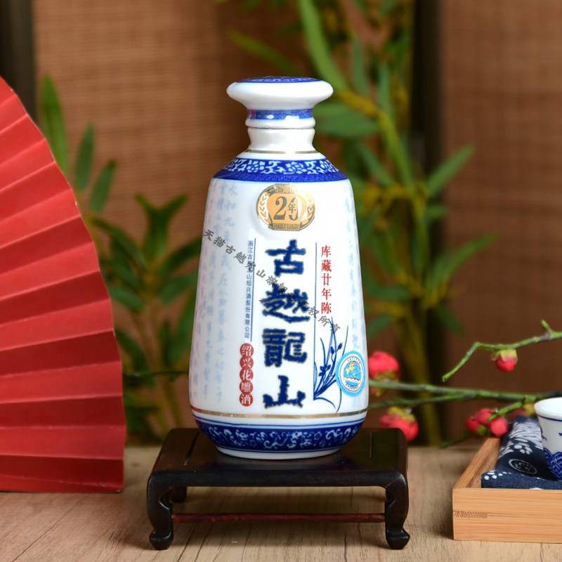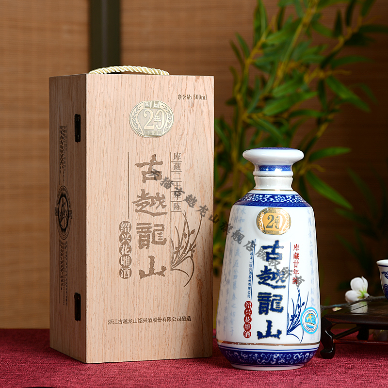 天猫古越龙山绍兴黄酒木盒库藏二十年陈半干花雕酒500ml*6瓶