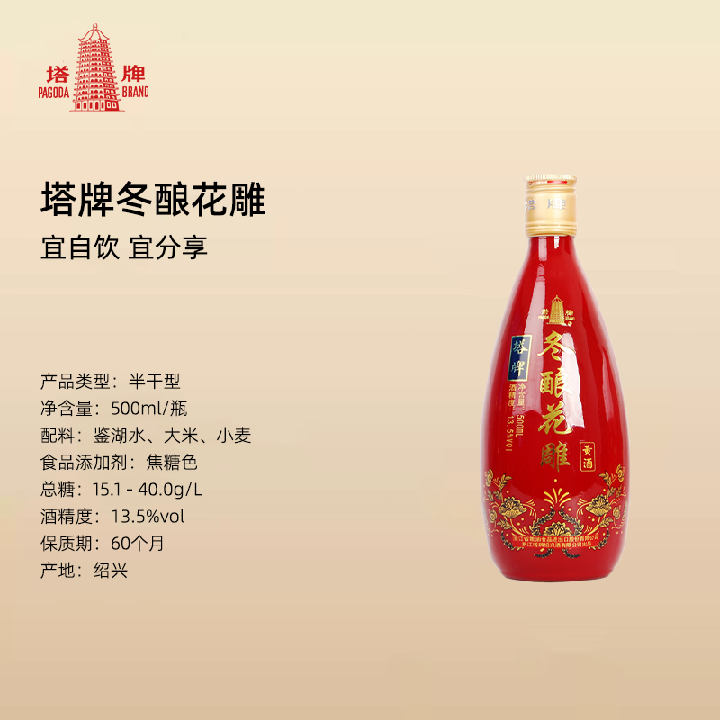 天猫塔牌冬酿花雕酒500ml*6瓶整箱手工冬酿加饭酒送礼盒绍兴特产黄酒