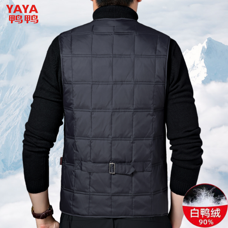 鸭鸭拼色鸭绒马甲中年秋冬保暖立领坎肩时尚白鸭绒加厚背心外套男