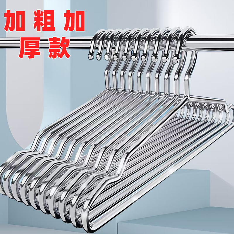 淘304不锈钢衣架家用挂衣晾衣服晒衣撑加宽扁条学生加粗衣挂衣架子