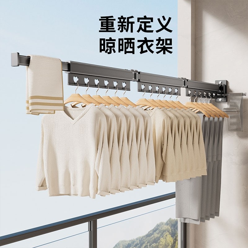 天猫折叠晾衣架隐形伸缩固定式家用阳台墙上晒被子神器壁挂晾衣杆吸盘