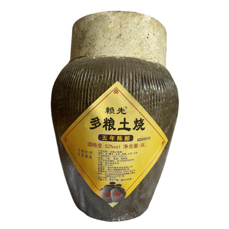 淘宝酒厂直营 赖先五种粮食土烧酒52度纯粮食白酒固态发酵5升坛装正品