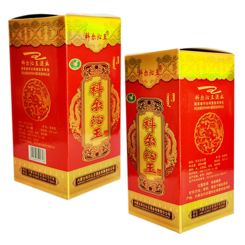 淘宝包邮 科尔沁王酒紫砂500mL*6瓶 归流河白酒内蒙古38度42度红宝石