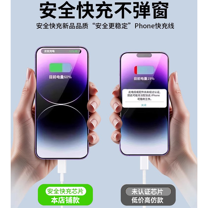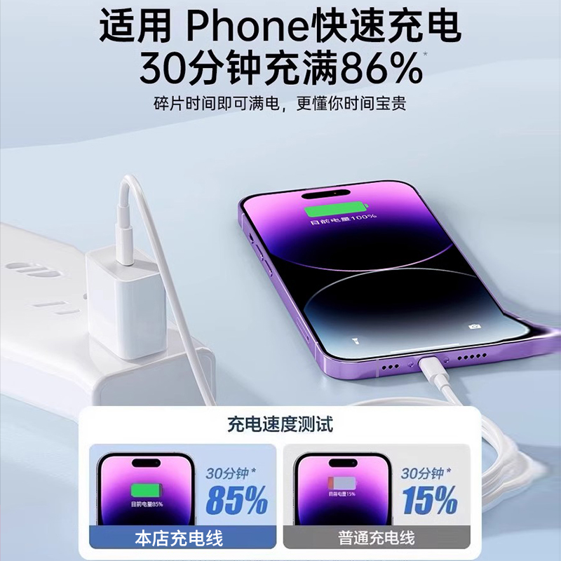 天猫【官方原配快充】30W快充数据线适用苹果充电线14iPhone13/12proMax1115/16手机XS/XR/8piPad平板6s2米7plus