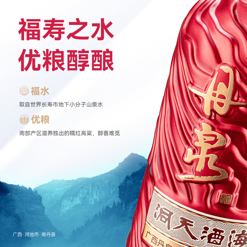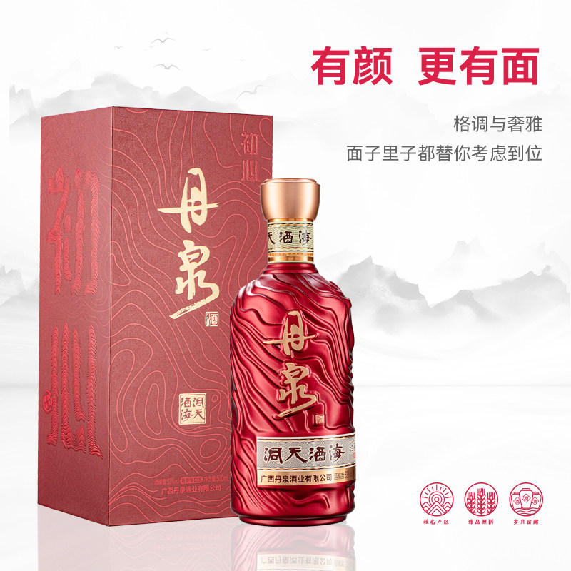 天猫2瓶装含手提袋】广西丹泉53度洞天酒海初心酱香型纯粮白酒500ml*2