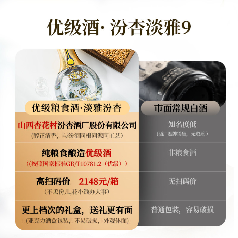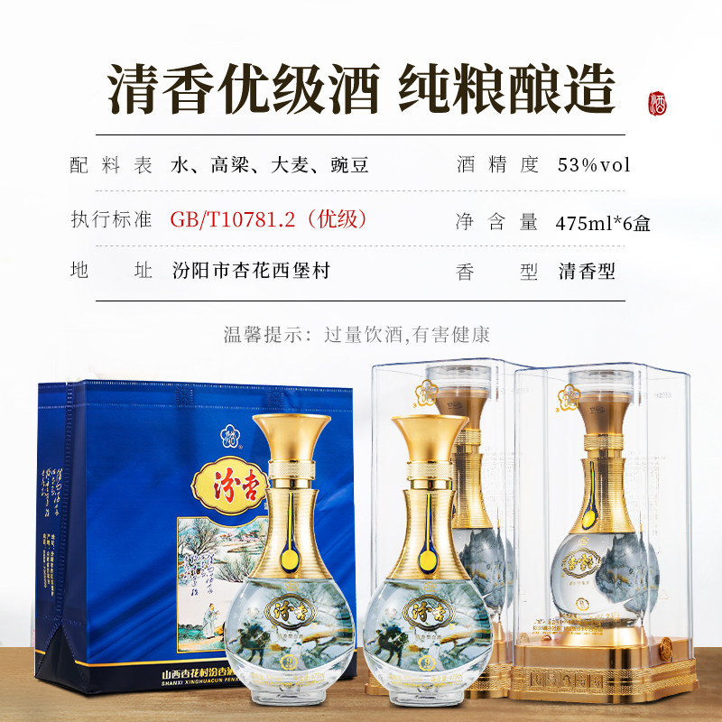 天猫杏花村百年汾杏淡雅9清香型53度优级酒白酒整箱475ml*6瓶高档送礼