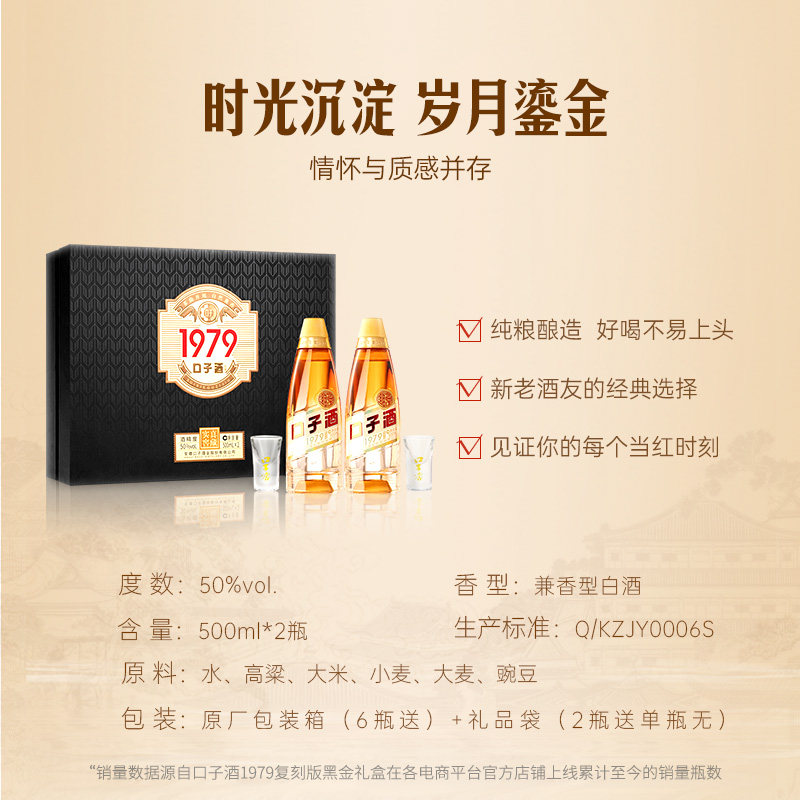天猫口子窖1979黑金礼盒50度500mL*2瓶 口子酒安徽兼香型纯粮白酒送礼