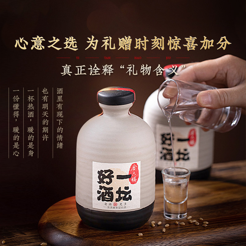 【官方直营】金六福一坛好酒陶坛40.8度500mL兼香型白酒,精选优质高粱、小麦等五谷原料,采用传统固态发酵工艺,结合现代科技精心酿制。酒体清澈透明,香气馥郁,融合了浓香与酱香之精髓,口感醇厚绵柔,回味悠长,层次丰富。陶坛储存更利于酒体老熟,赋予酒液独特陈香。40.8度适中酒精度,饮后不上头,适合自饮、宴请或礼赠。瓶身设计古朴典雅,彰显东方酒文化韵味。金六福官方直营,品质保障,每一滴都承载着匠心与传承,是品味兼香型白酒的优选之作。