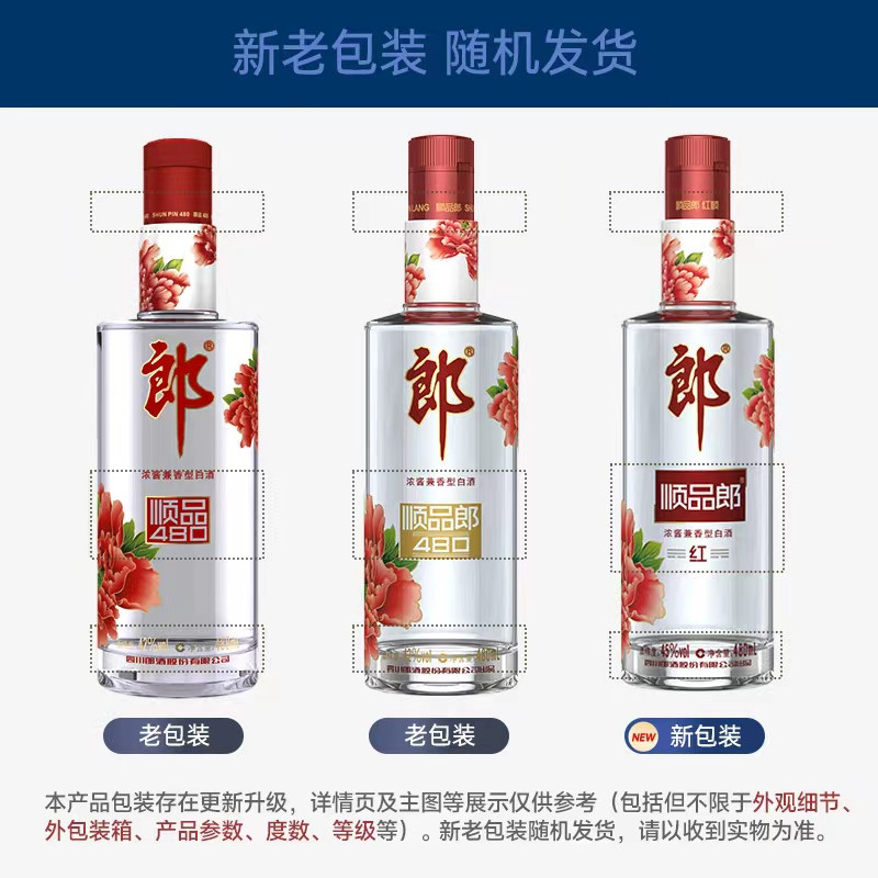 天猫郎酒顺品郎480红顺480ml*2瓶浓酱兼香型45度光瓶白酒聚会纯粮食酒