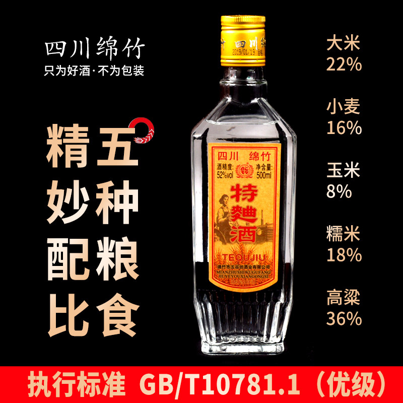 2019年绵竹特曲52度浓香型白酒粮食酒整箱纯粮酿酒酒业珍品回购