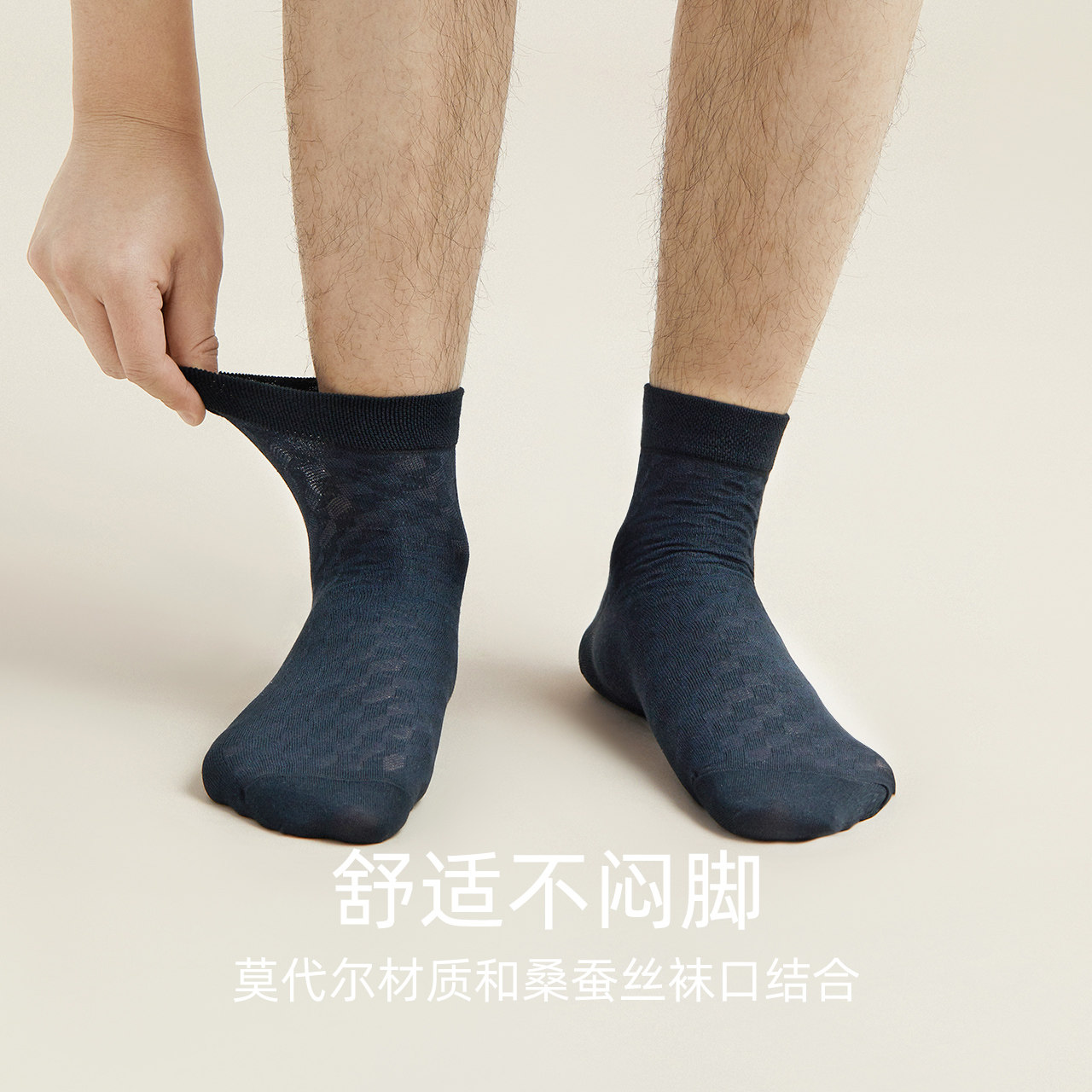 天猫三双装男士袜子莫代尔中帮袜男商务网眼春夏薄款含桑蚕丝抑菌男袜