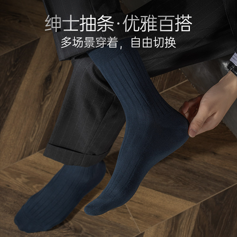 天猫100%棉袜子男中筒秋冬款纯棉抗菌防臭全棉商务袜抽条黑色男袜长袜