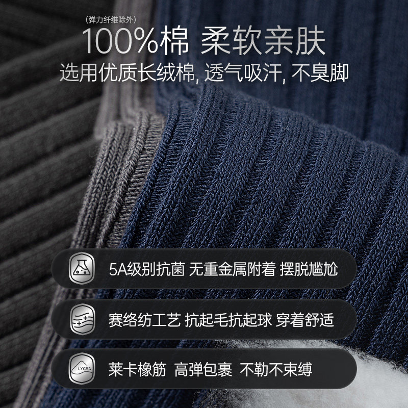 袜神出品进口高品质纯棉中筒秋冬季厚男袜简约款精品商务休闲袜子