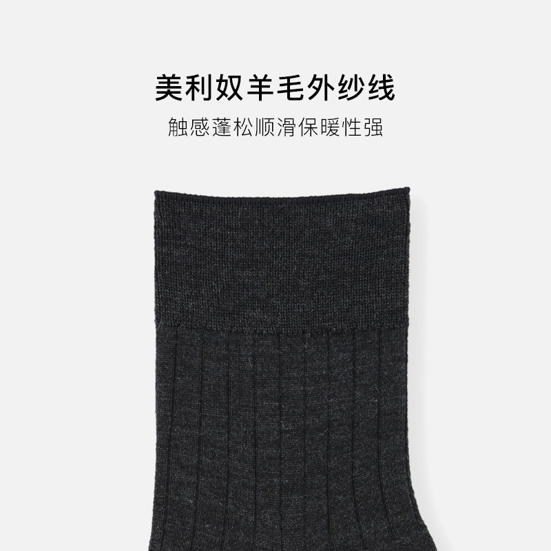 天猫Tabio美利奴羊毛袜子男秋冬高弹透气无骨中筒袜百搭休闲商务男袜