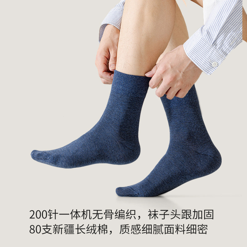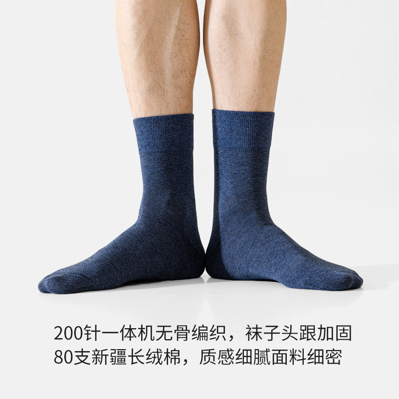 天猫新疆棉男袜子中筒袜纯棉秋冬藏蓝色防臭全棉黑色商务男长袜厚棉袜