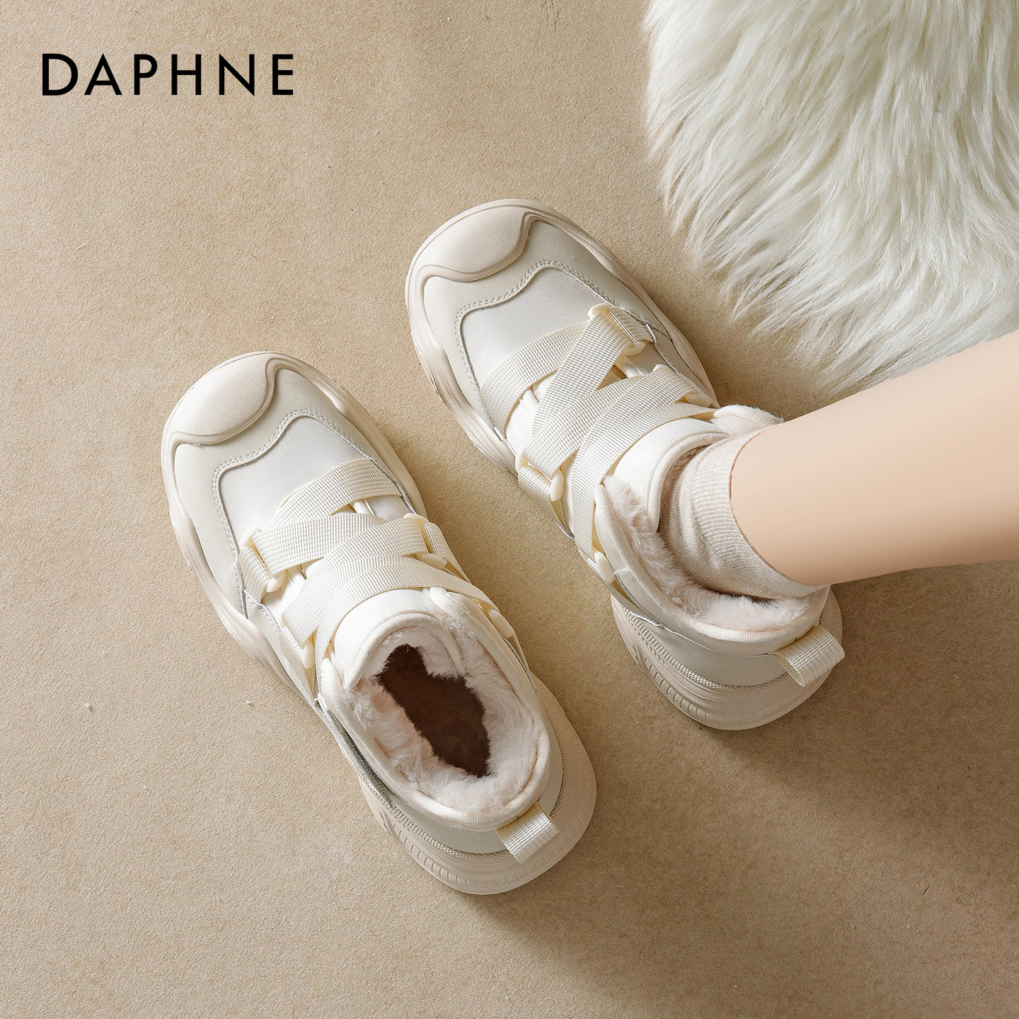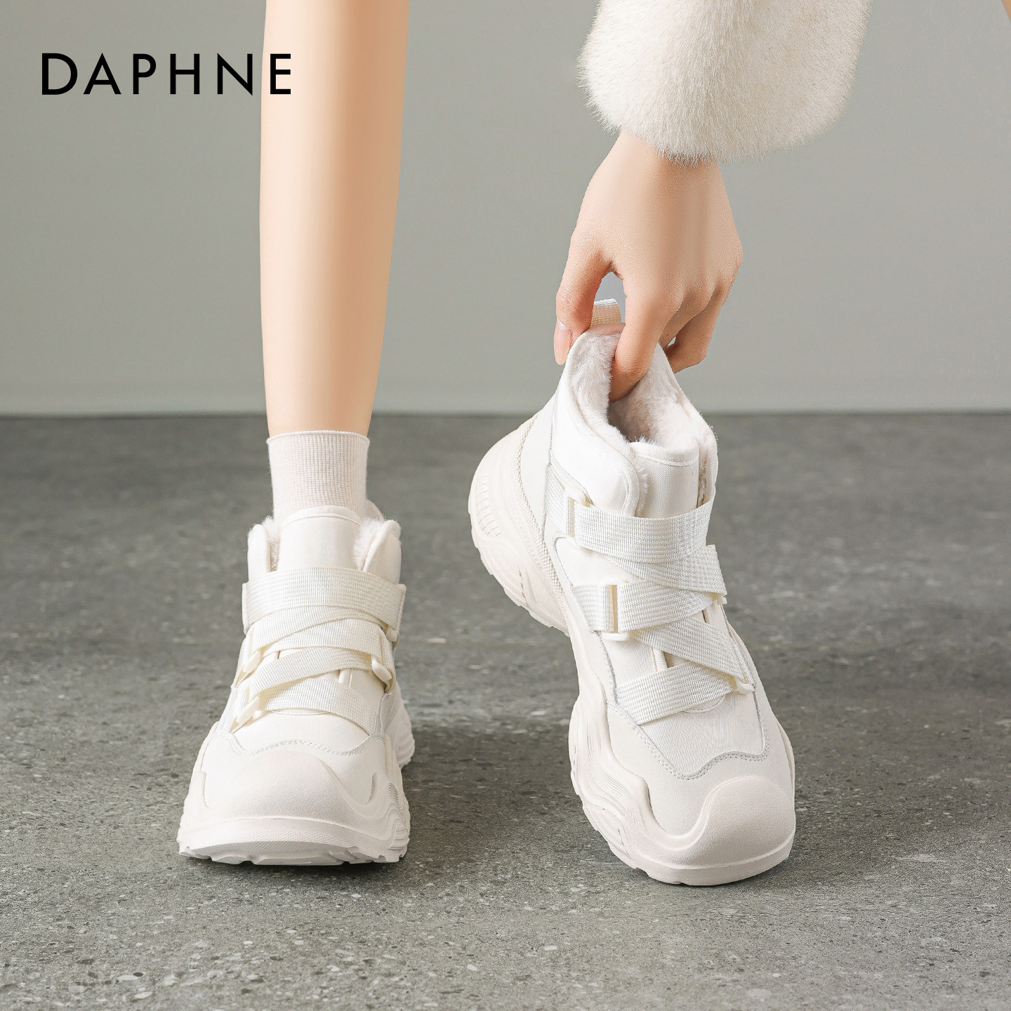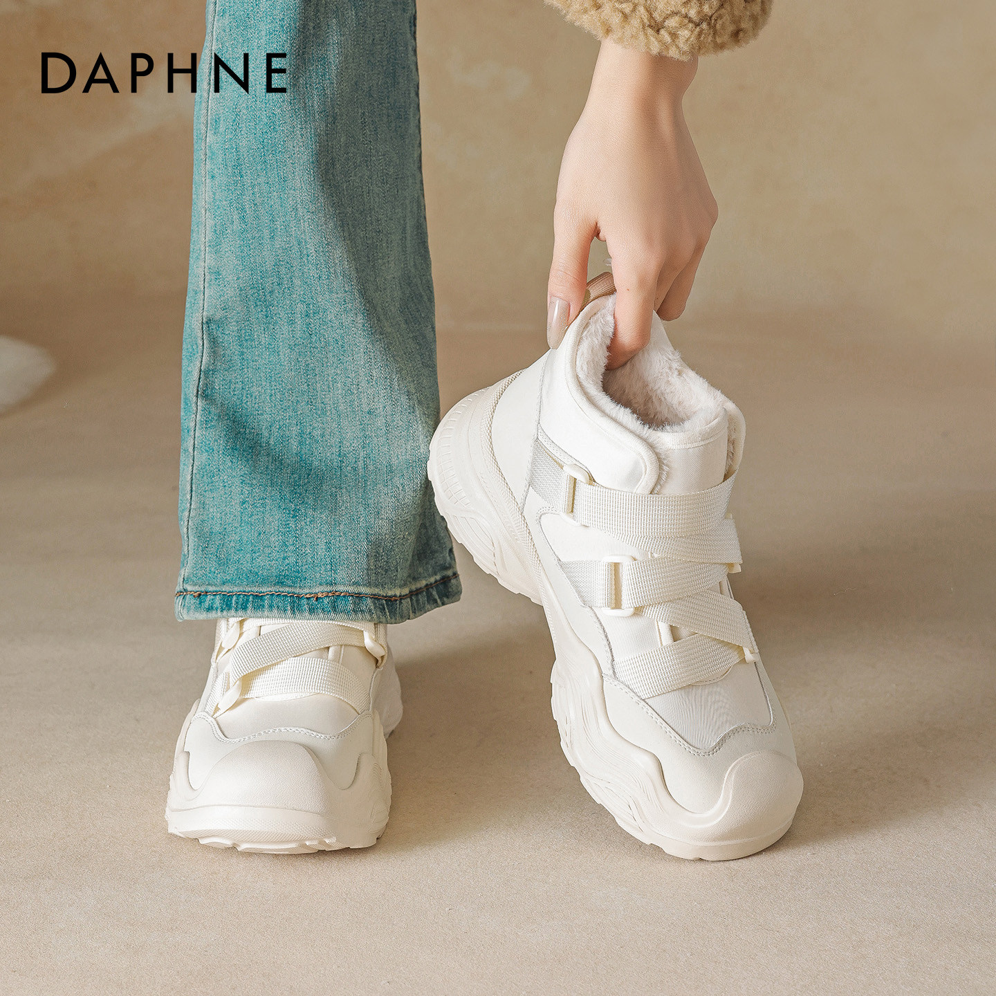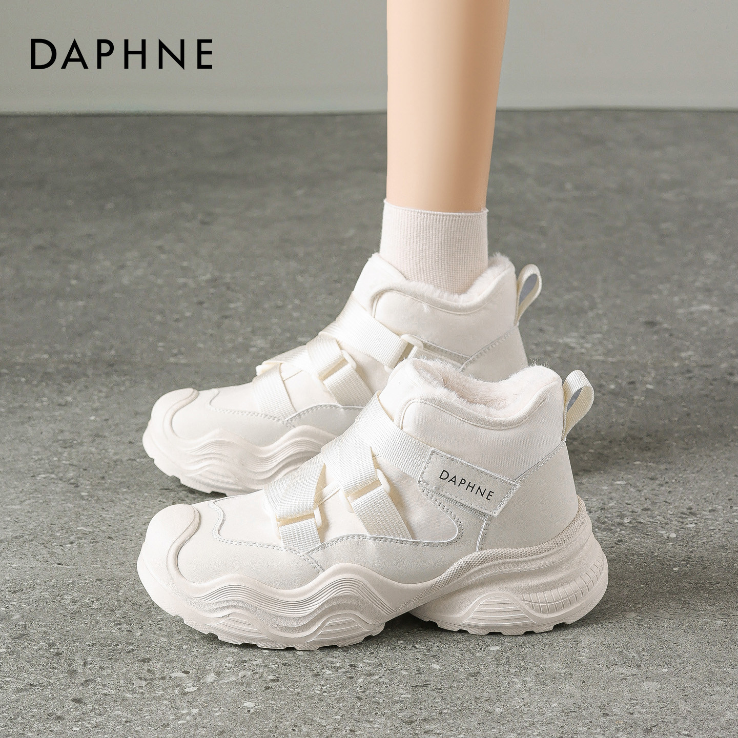 2025年冬季新款达芙妮厚底雪地靴女款,融合时尚与保暖,专为都市女性打造。采用优质加绒内里,柔软亲肤,锁温御寒,轻松应对严寒天气。经典老爹鞋设计搭配短靴版型,厚底增高显腿长,同时提升舒适度与稳定性。鞋面选用耐磨防泼水材质,搭配百搭小白配色,简约清新,轻松驾驭各种冬日穿搭。无论是通勤、逛街还是户外出行,都能兼顾风格与实用。达芙妮以匠心工艺诠释冬日风尚,这款雪地靴不仅是保暖单品,更是冬季造型的点睛之笔,温暖与潮流并存,陪你度过每一个 chilly day。
