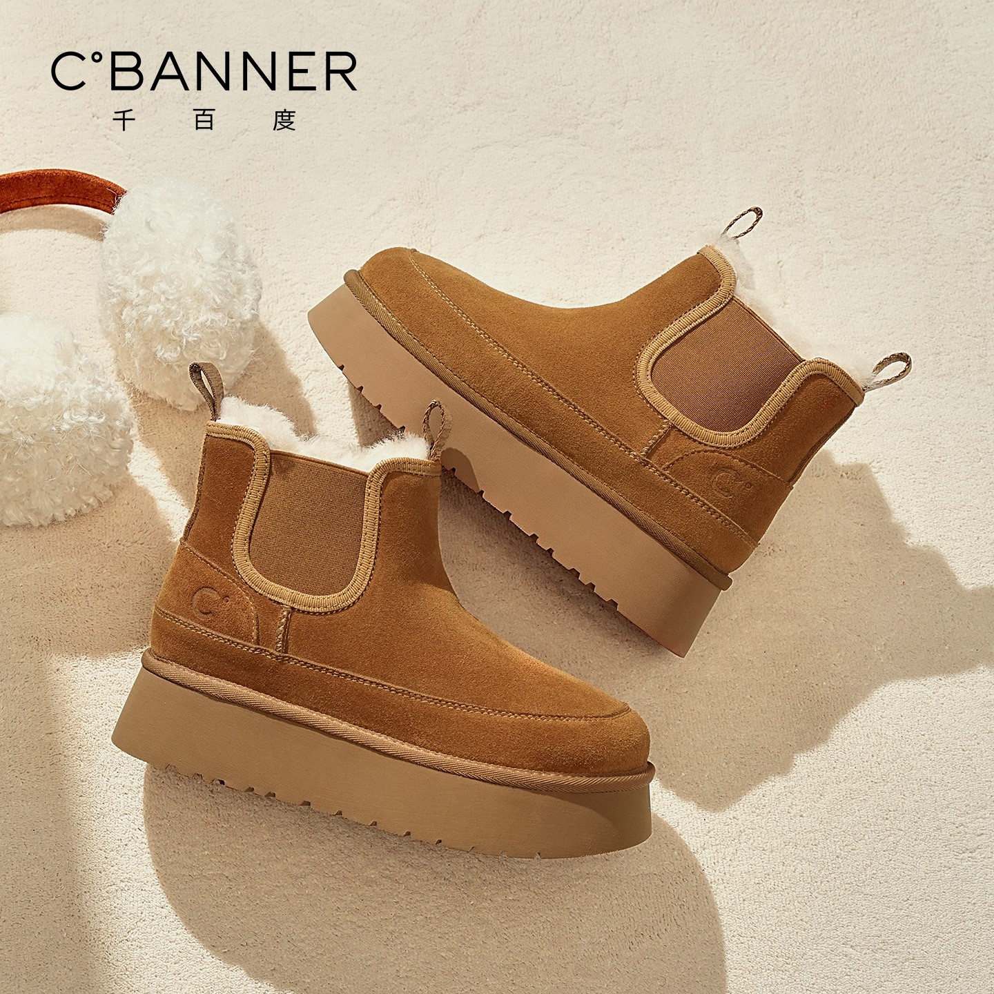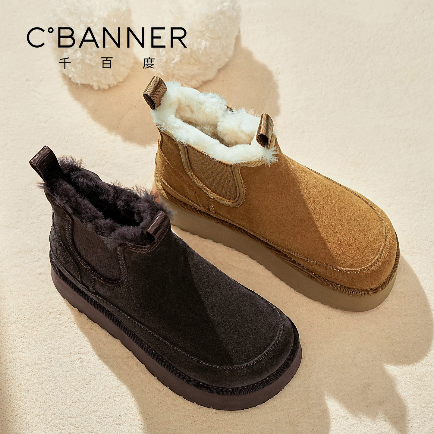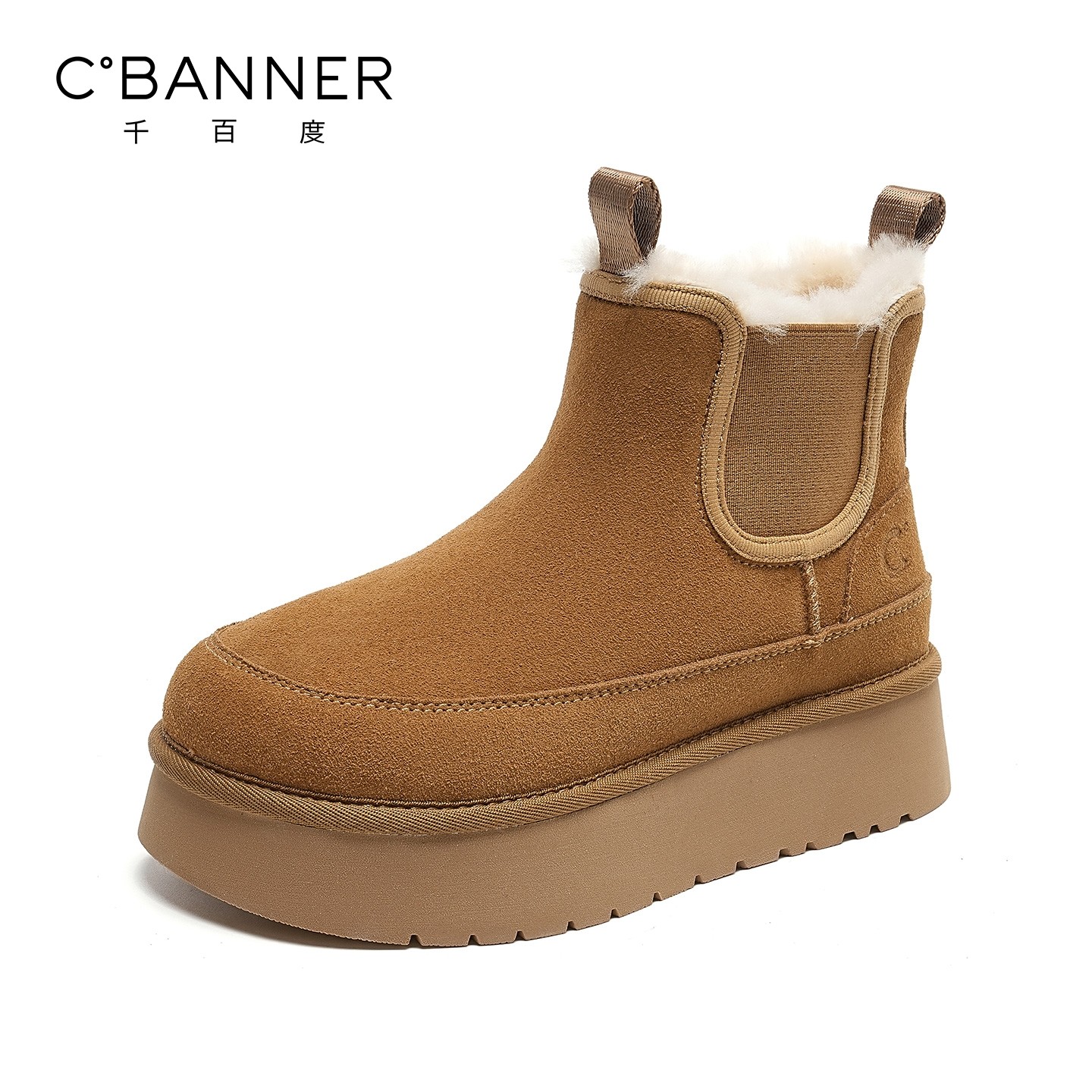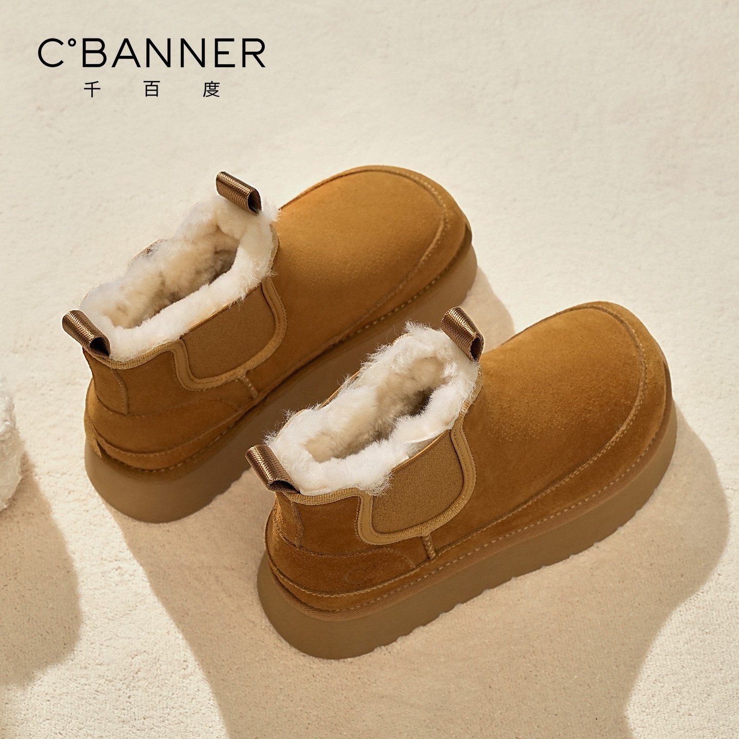 天猫千百度厚底真皮雪地靴女2025冬季新款百搭加厚棉鞋外穿加绒短靴女