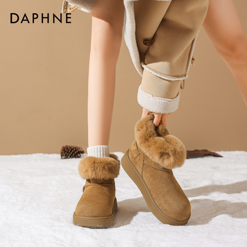 天猫达芙妮厚底雪地靴女款2025冬季新款加绒保暖短靴时尚休闲毛毛棉鞋