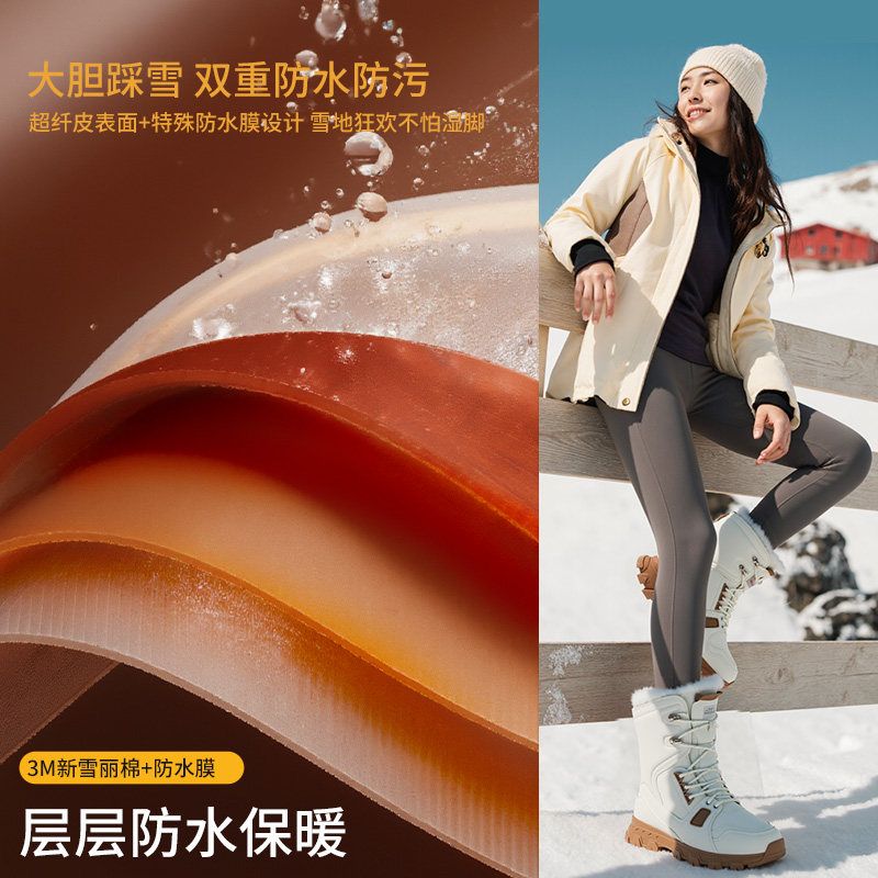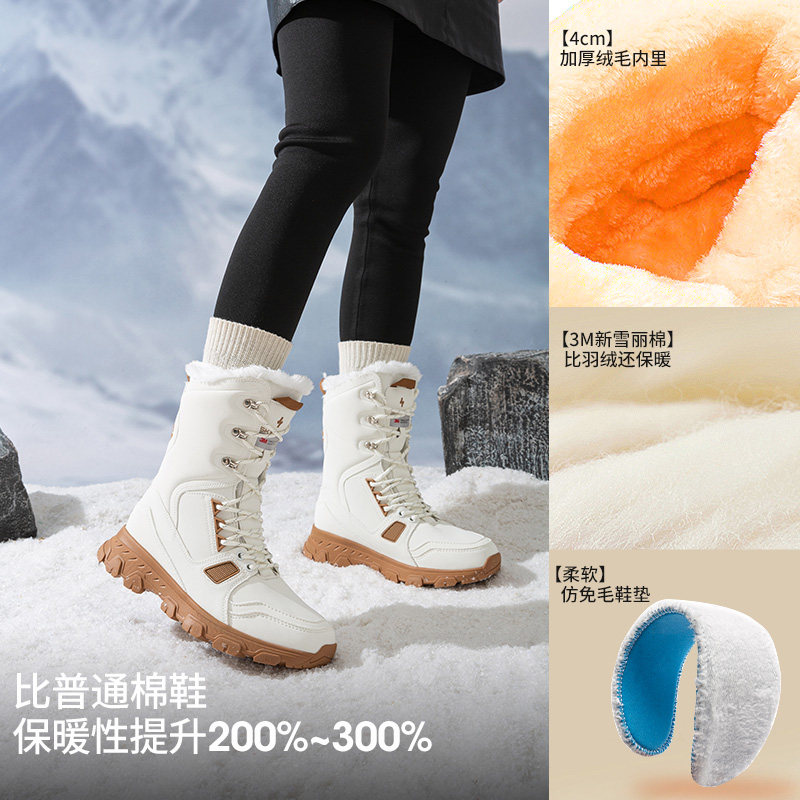 天猫SkyPilot雪地靴女款加绒加厚防水防滑厚底东北长筒棉靴保暖雪鞋男