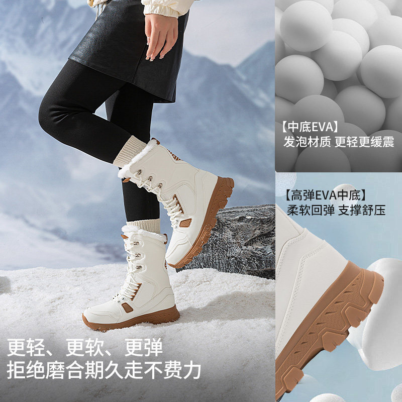 EBLAN/伊伴厚底毛毛长筒雪地靴女2025冬季新款后绑带加绒保暖棉鞋