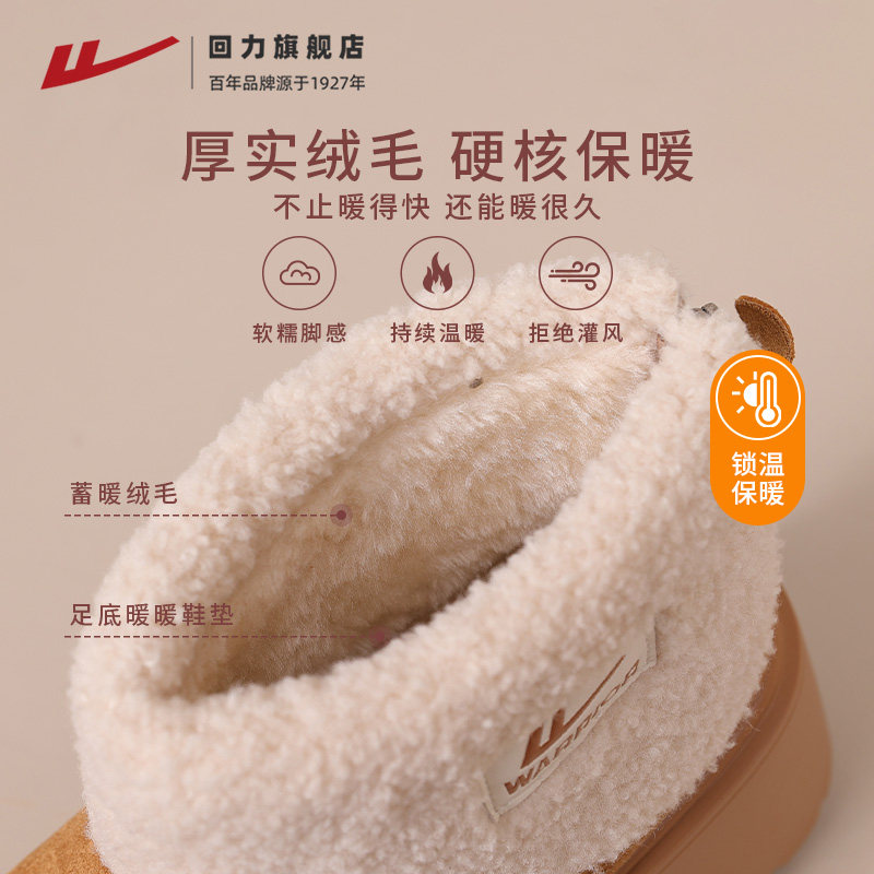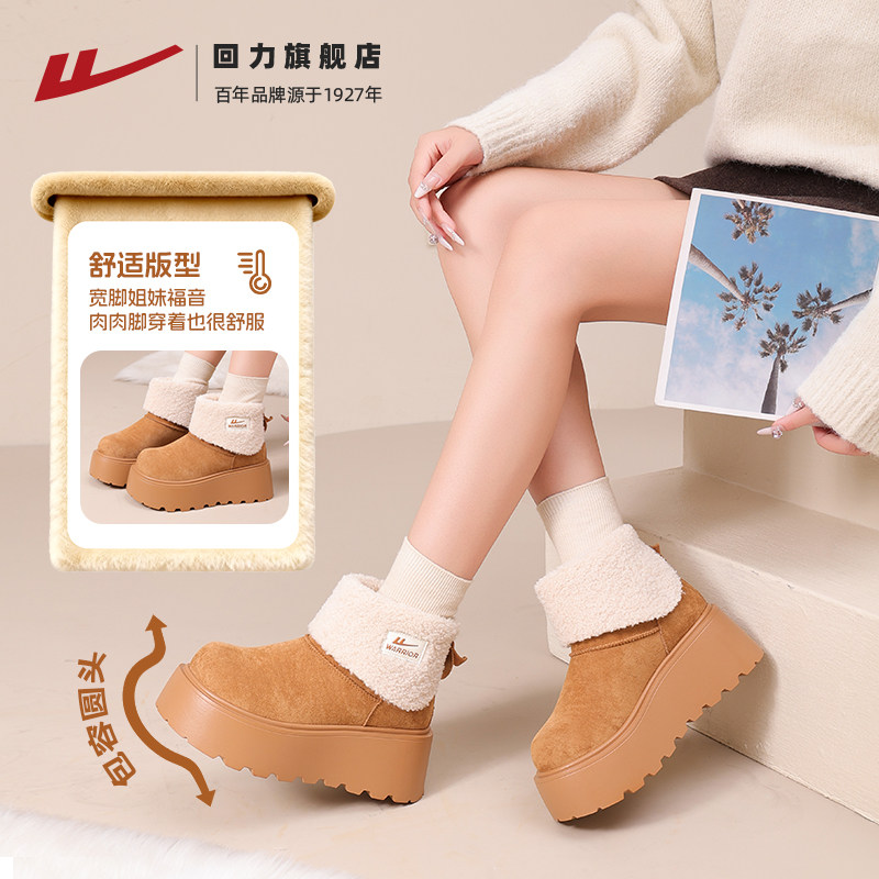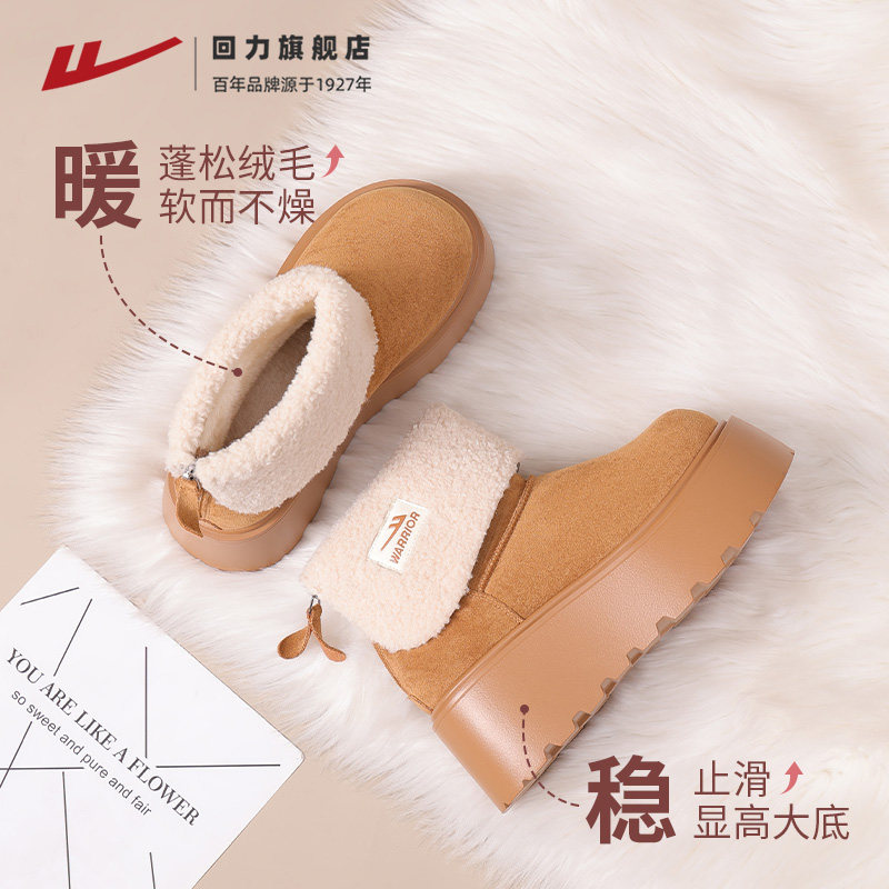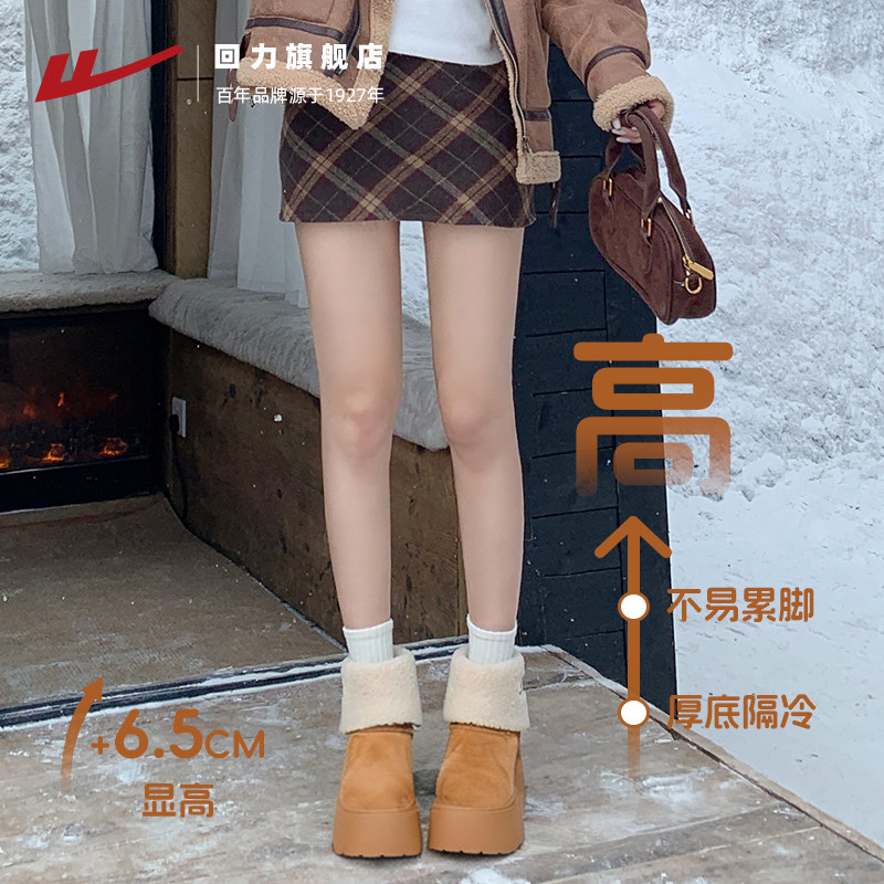 天猫回力厚底增高雪地靴女款2025年冬季新款加绒短靴小个子保暖棉鞋女