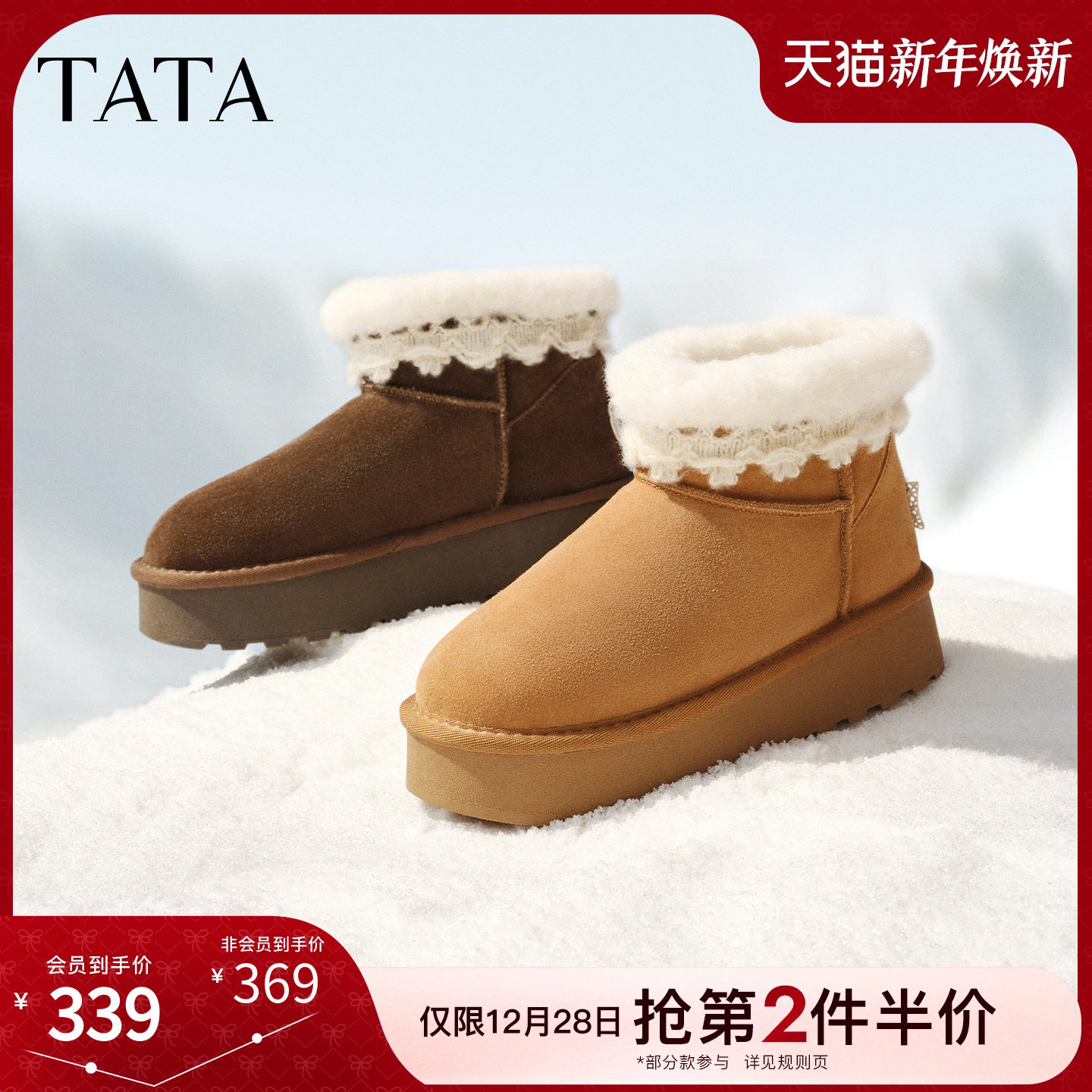 天猫TATA他她雪地靴冬季鞋子2025毛毛加绒女鞋厚底保暖棉鞋子CWW04DD5