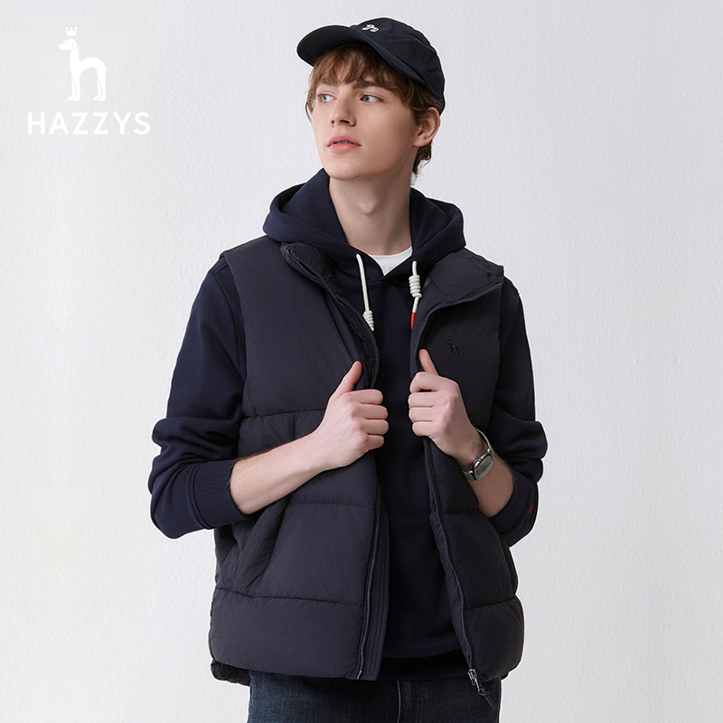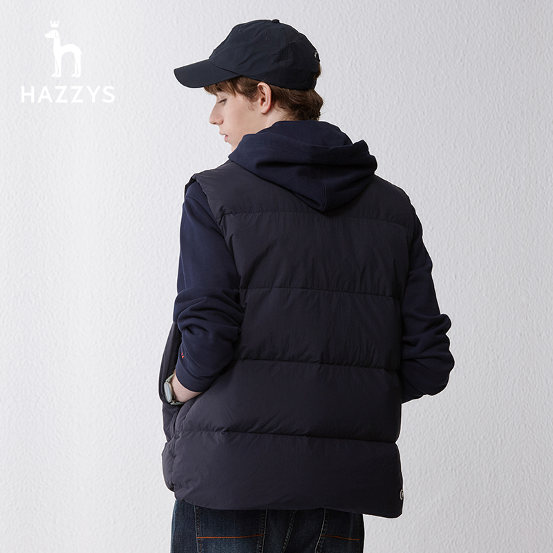 Hazzys哈吉斯奥莱男装秋季新品男士保暖鸭绒羽绒马甲背心男潮流