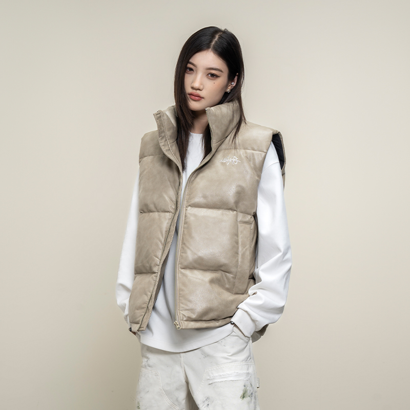 POLOWALK男士日系羽绒马甲秋冬立领背心纯色简约保暖百搭外套