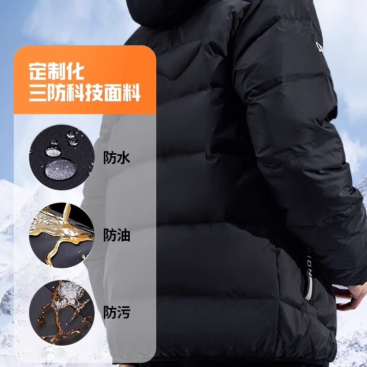 淘冬季新款男士高端字母印花加厚连帽鸭绒羽绒服潮牌工装保暖外套潮