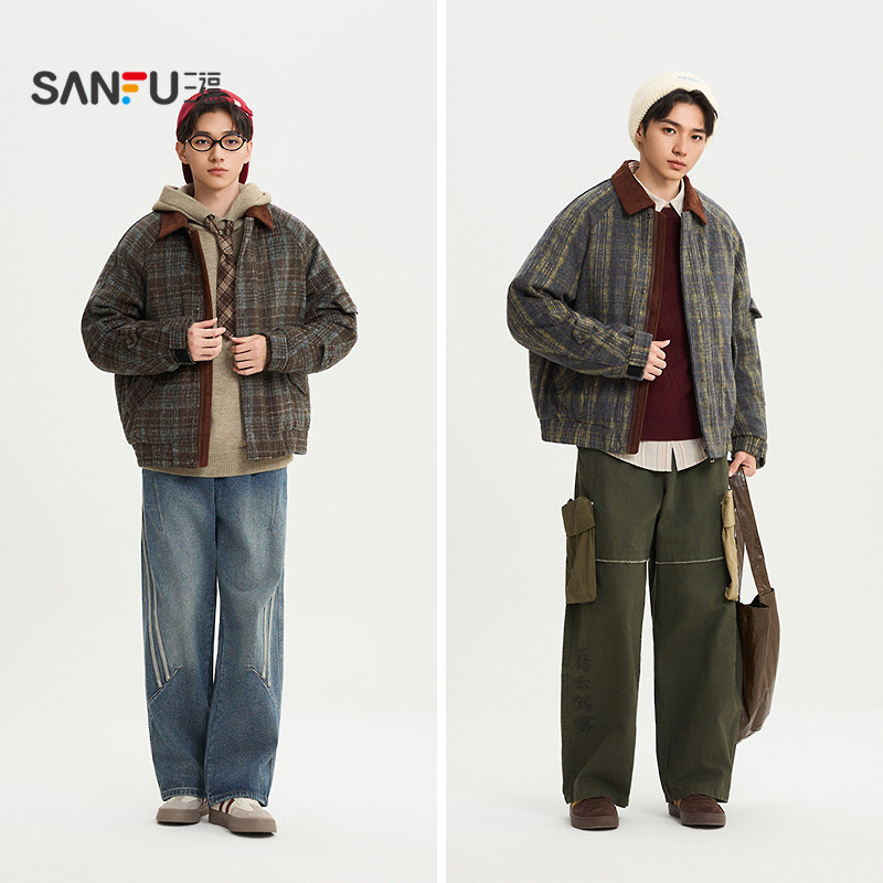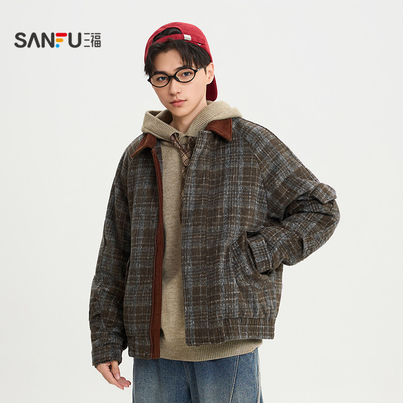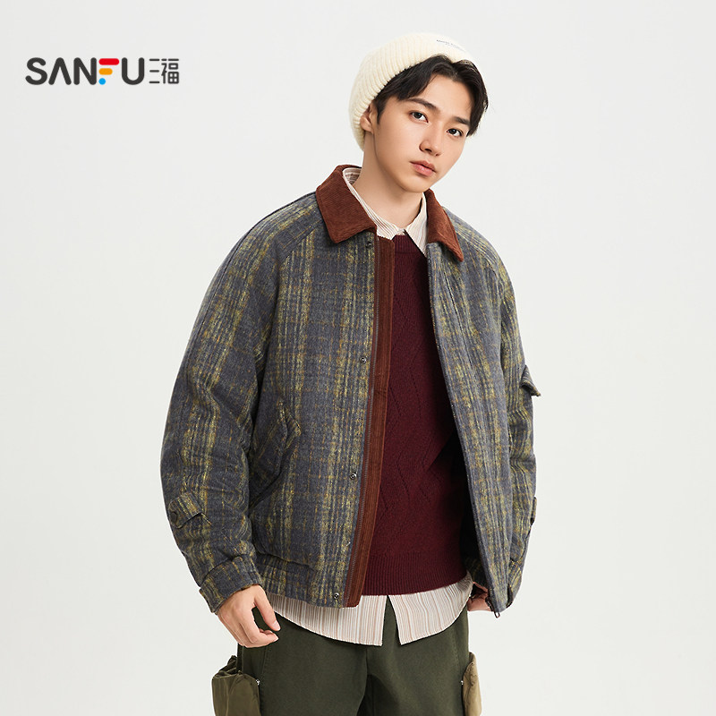 三福2025冬季新款男士撞色领短款厚羽绒服(货号:514933),融合时尚与保暖,专为都市型男打造。采用高品质防风面料,内里填充优质白鸭绒,蓬松轻盈,锁温抗寒。短款宽松剪裁,搭配经典格子呢料拼接设计,层次丰富,彰显个性。撞色立领设计,既防风又提升整体造型感,袖口与下摆微收,兼顾舒适与利落。多口袋实用布局,满足日常收纳需求。无论是通勤还是休闲出行,都能轻松驾驭,是冬季衣橱的必备单品,兼顾潮流格调与实穿性能。