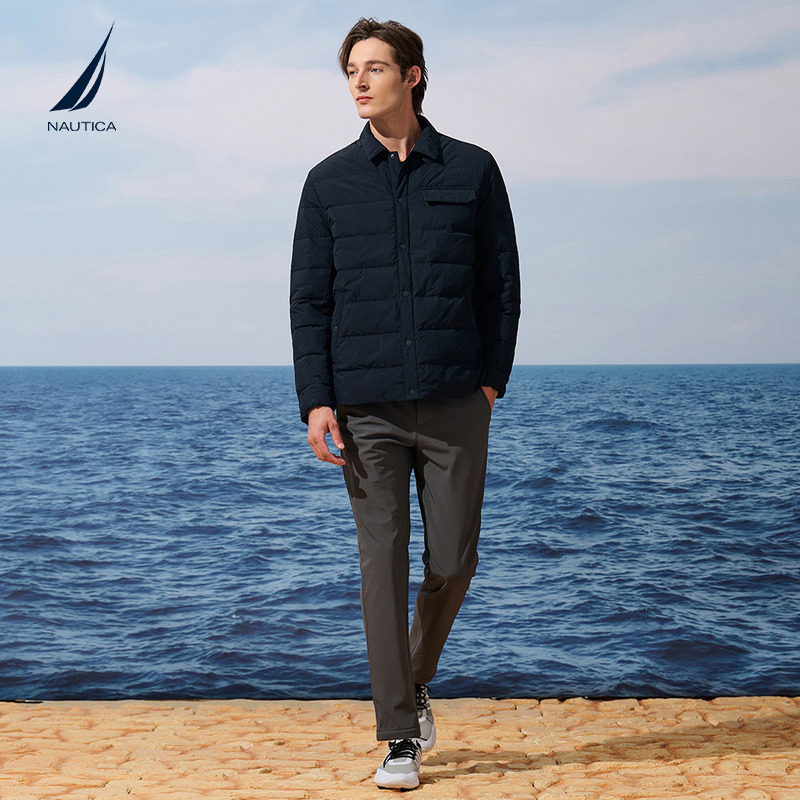 天猫【抗菌】NAUTICA/诺帝卡男装25冬季新品肌理感休闲时尚翻领羽绒服