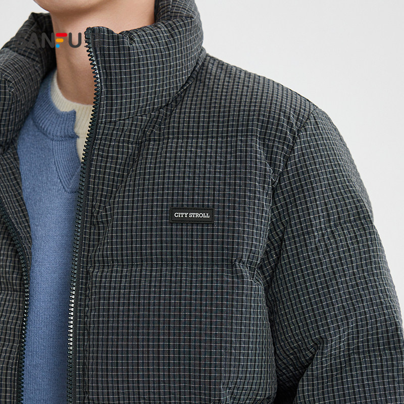 天猫三福2025冬季男士肌理格子羽绒服 时尚立领宽松保暖外套511864
