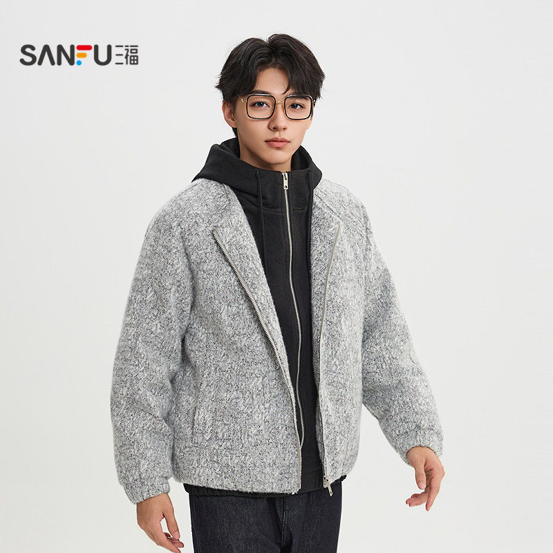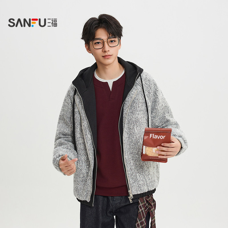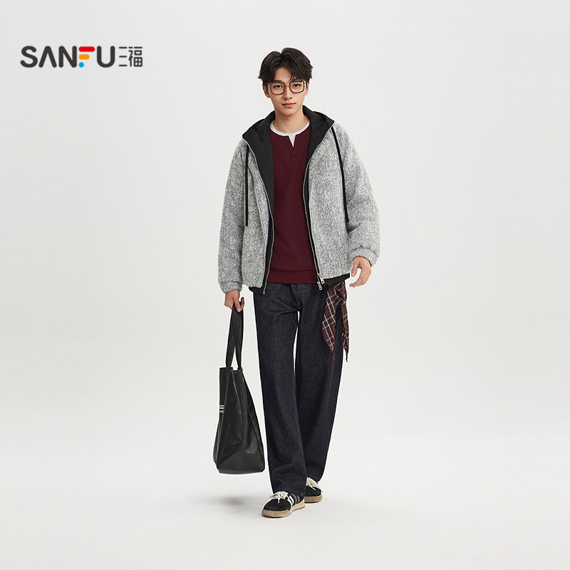 三福2025冬季男士花版呢料连帽羽绒服都市宽松保暖外套(型号:513313),融合时尚设计与实用保暖性能,专为都市男性打造。采用高品质花版呢料面料,质感挺括,防风耐磨,搭配连帽设计,有效抵御寒风侵袭。内里填充优质白鸭绒,蓬松轻盈,锁温保暖,即使在严寒冬日也能保持舒适体感。宽松版型剪裁,包容性强,活动自如,适合多种身形。细节处注重实用与美观,如多口袋设计、顺滑拉链及精致走线,彰显品牌工艺。无论是通勤、休闲还是户外出行,这款羽绒服都能轻松驾驭,是冬季衣橱的必备单品。