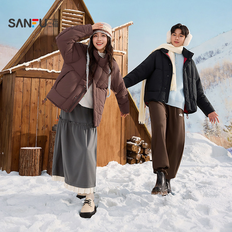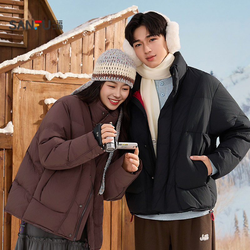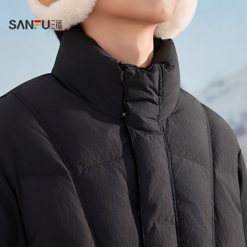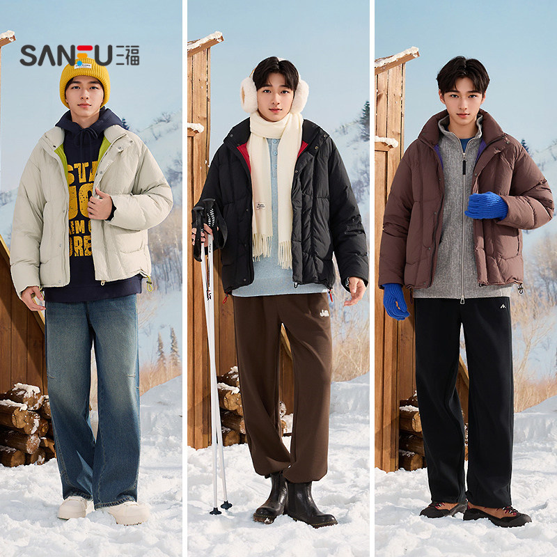 三福2025冬季新款男士内里撞色立领羽绒服下摆抽绳保暖外套511537