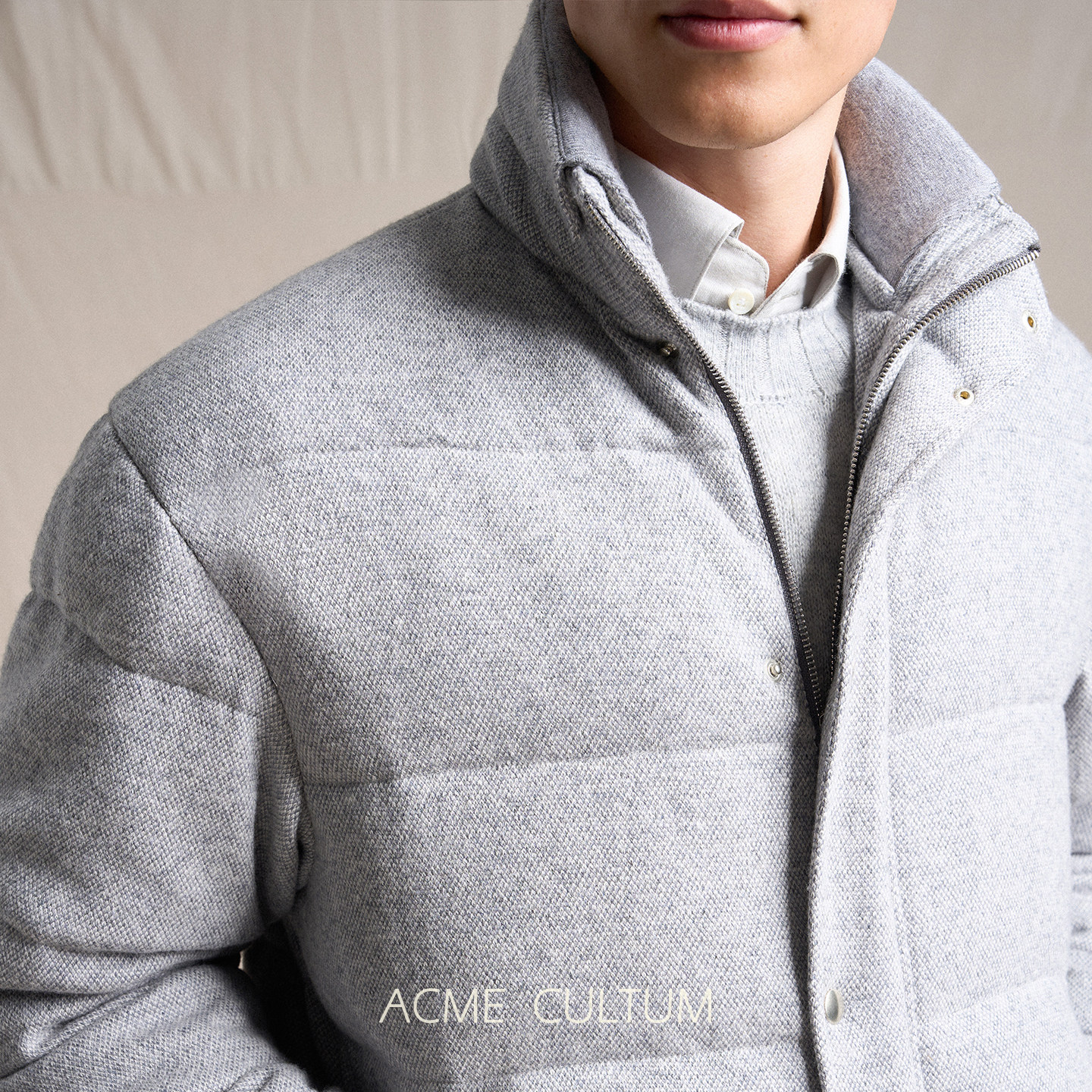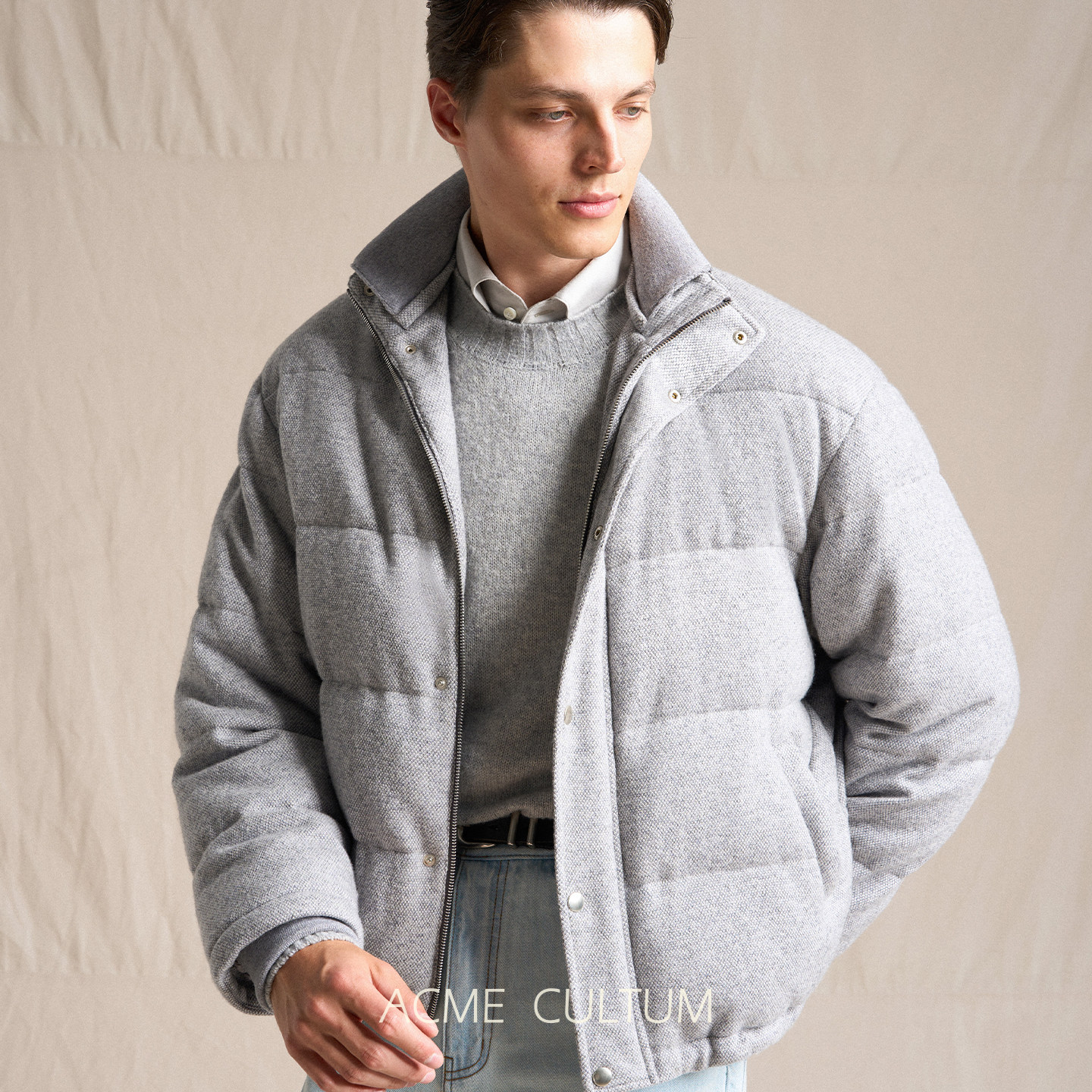 Acmecultum羊绒羊毛针织面料鹅绒加厚立领短羽绒服男夹克外套,专为追求品质与保暖的都市男士打造。采用高品质羊绒羊毛针织面料,触感柔软,兼具透气性与挺括感,提升整体穿着舒适度。内里填充优质鹅绒,蓬松度高,锁温保暖效果卓越,适合严寒冬季。立领设计有效防风护颈,短款剪裁利落有型,凸显男性挺拔身姿。细节考究,缝线紧密,口袋实用,兼顾美观与功能性。无论是通勤、休闲还是户外出行,都能轻松驾驭,展现低调奢华的冬日风尚。Acmecultum以匠心工艺,诠释现代男士的温暖型格。