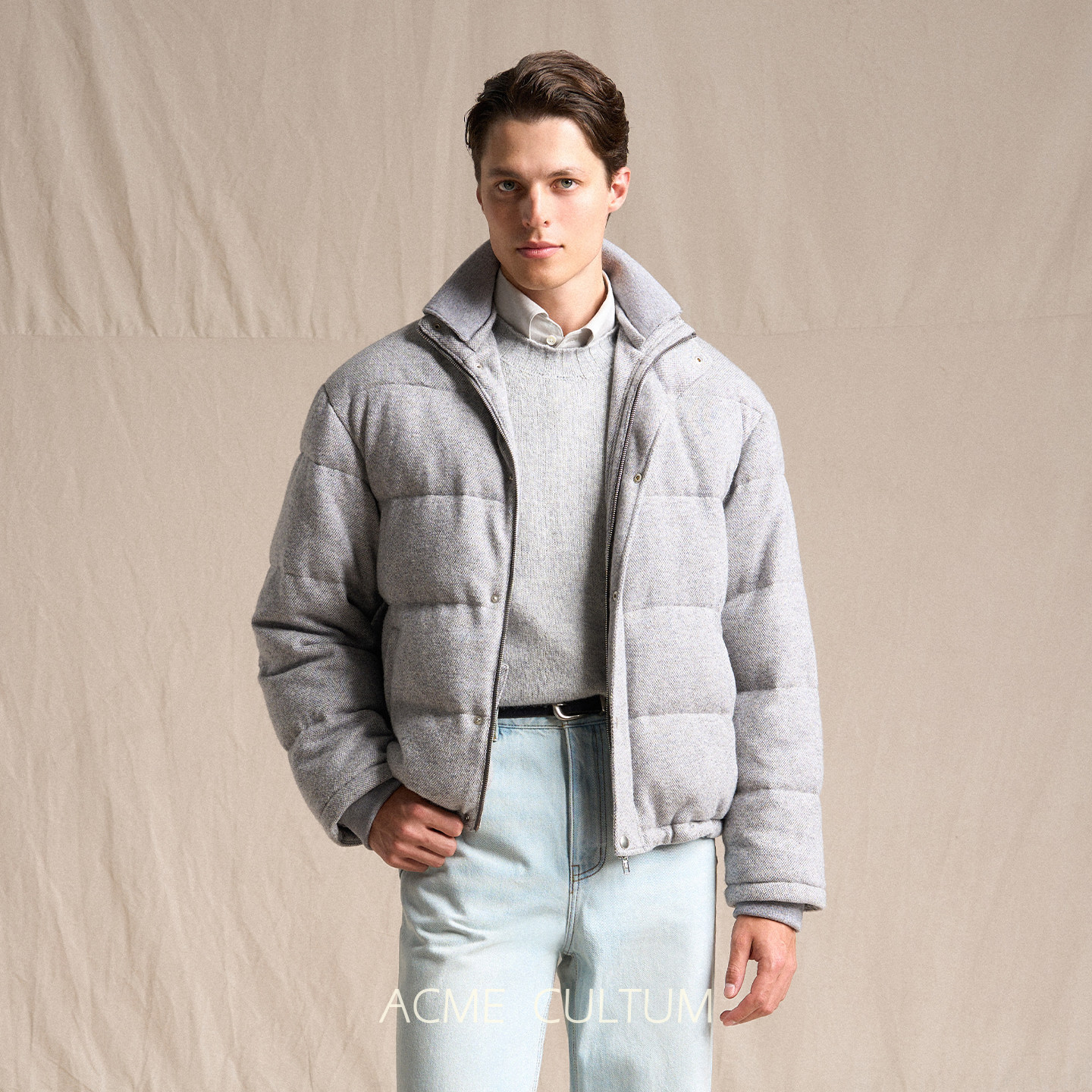 天猫Acme cultum羊绒羊毛针织面料鹅绒加厚立领短羽绒服男夹克外套冬