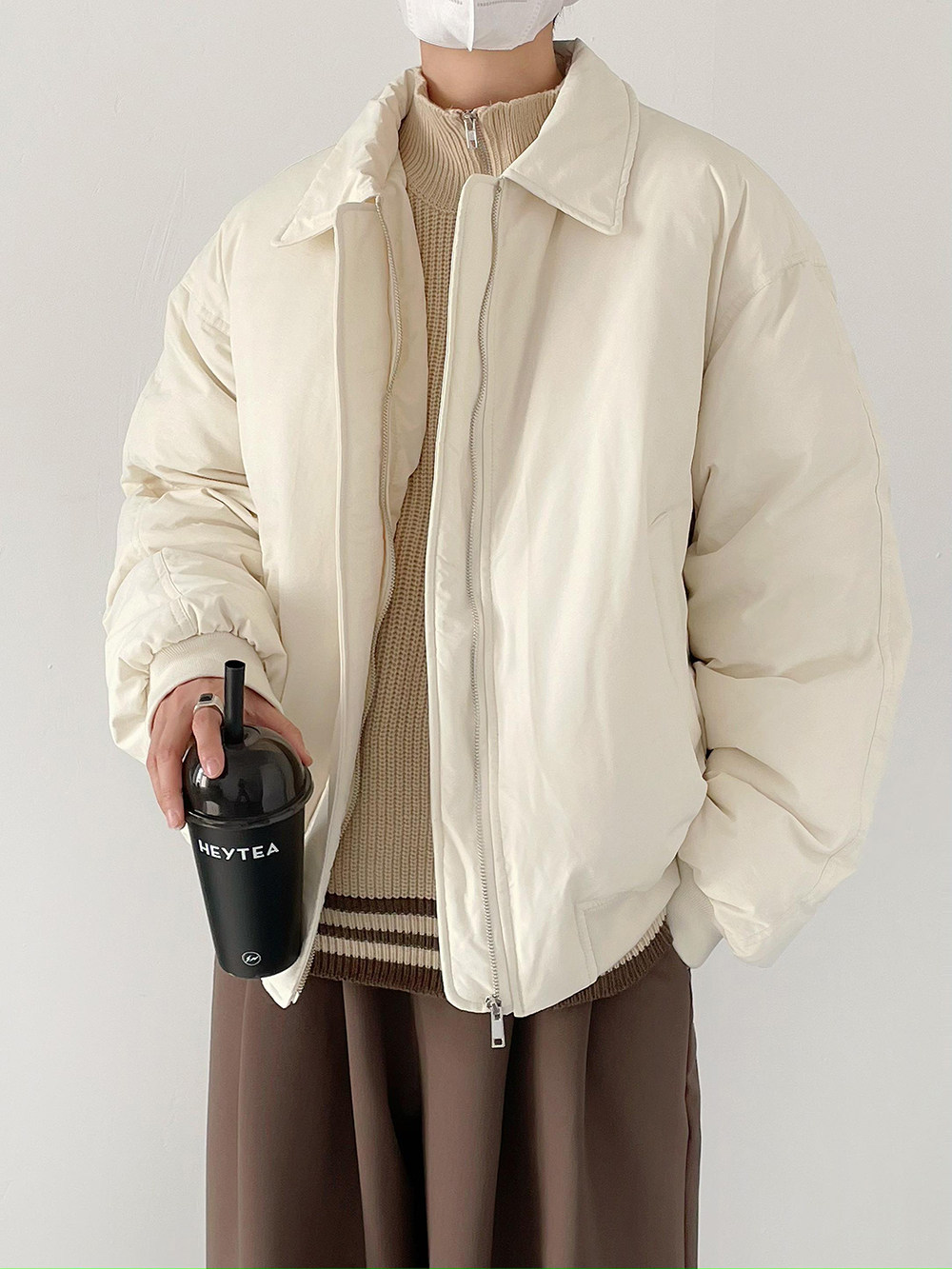 淘宝冬季韩版复古时髦短款棒球羽绒服男士宽松翻领纯色90白鸭绒外套潮