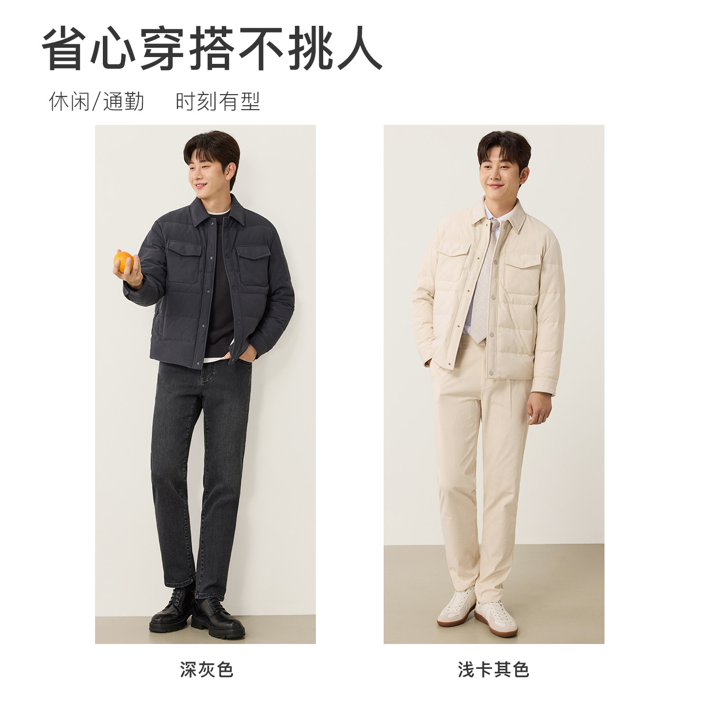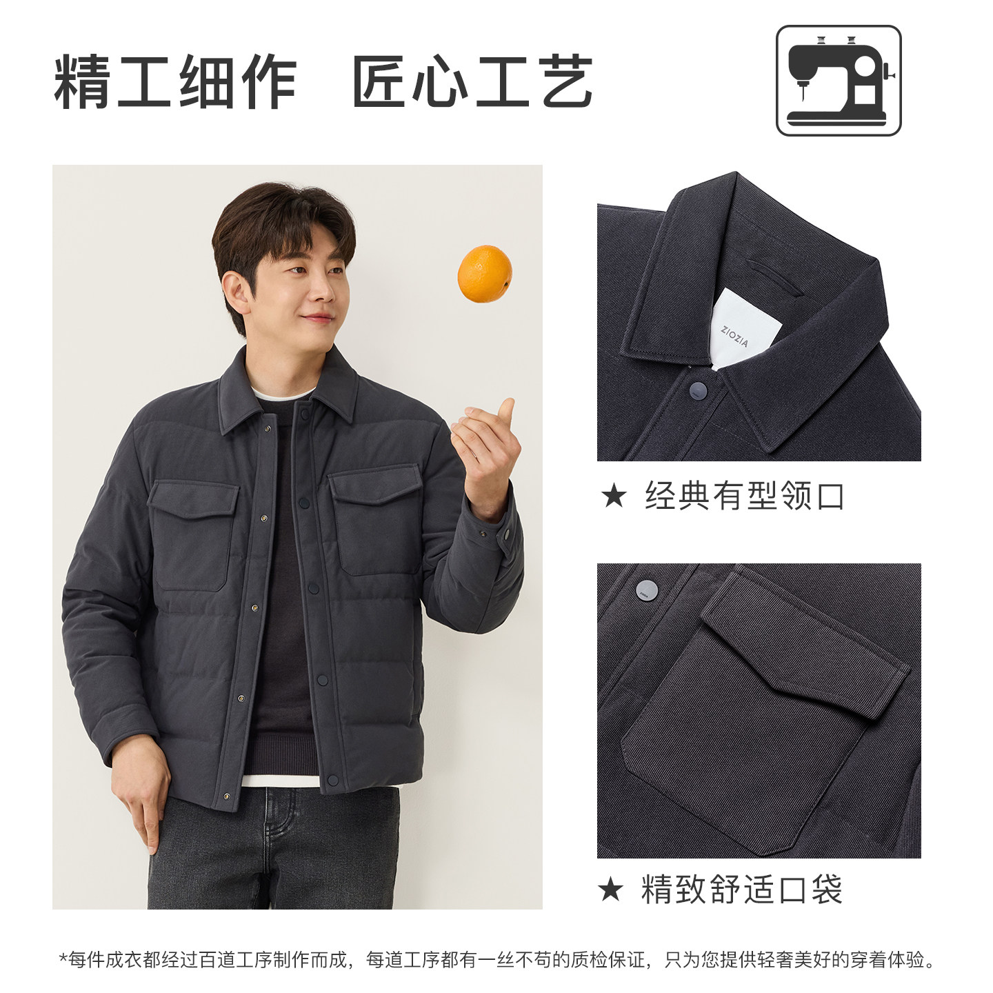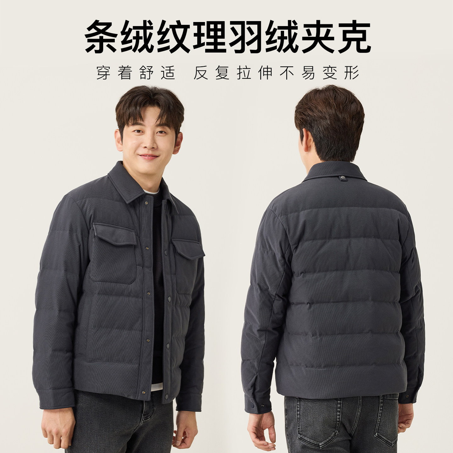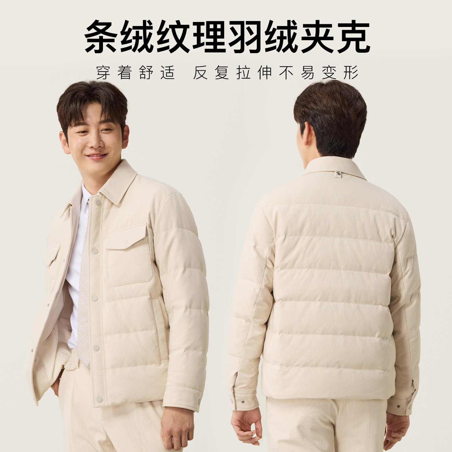 天猫【条绒肌理】ZIOZIA通勤男装25冬新品翻领保暖羽绒服夹克外套合身