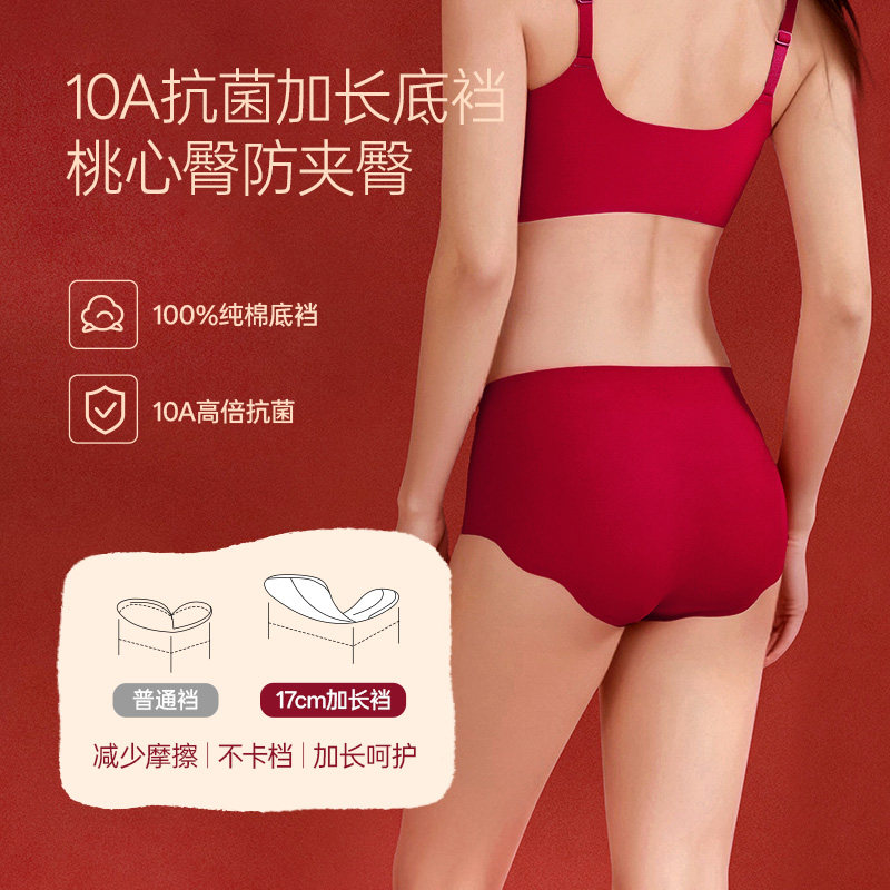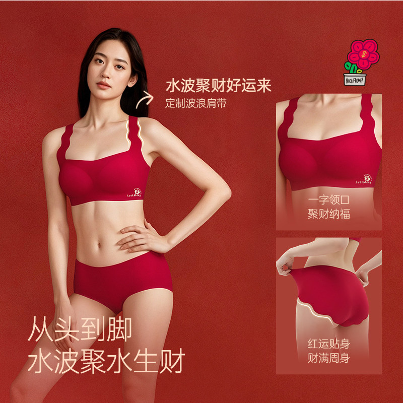 天猫幸棉红色内衣套装女马年无痕结婚新娘礼盒小胸聚拢内裤文胸本命年