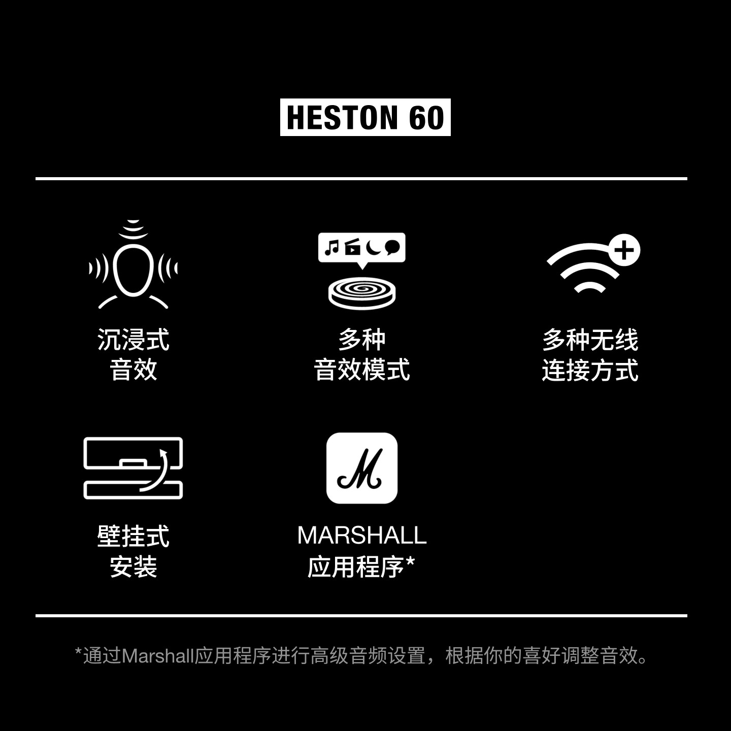 天猫MARSHALL HESTON60回音壁音响杜比全景声家庭影院电视音箱立体音