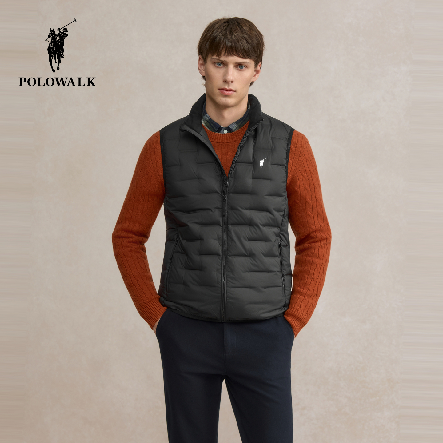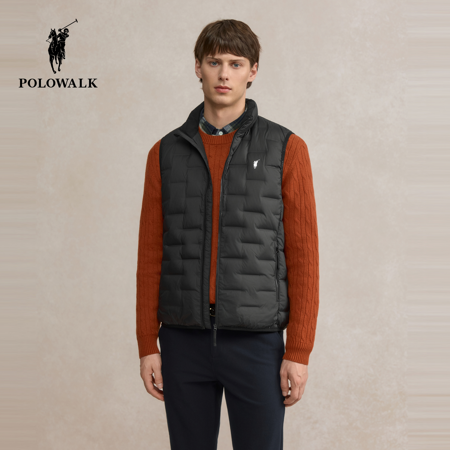 天猫POLOWALK男式羽绒马甲2025冬季新品绅士简约90鸭绒立领保暖背心男