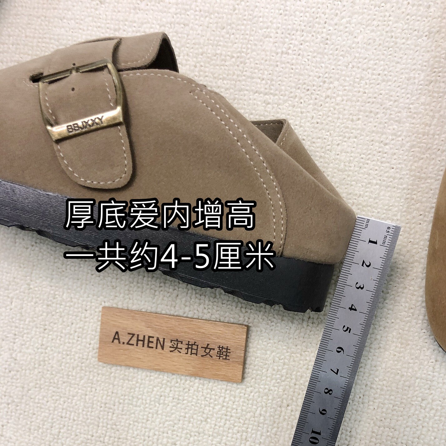 淘宝磨砂皮内增高勃肯鞋女复古包跟全包百搭圆头全包软底一脚蹬懒人