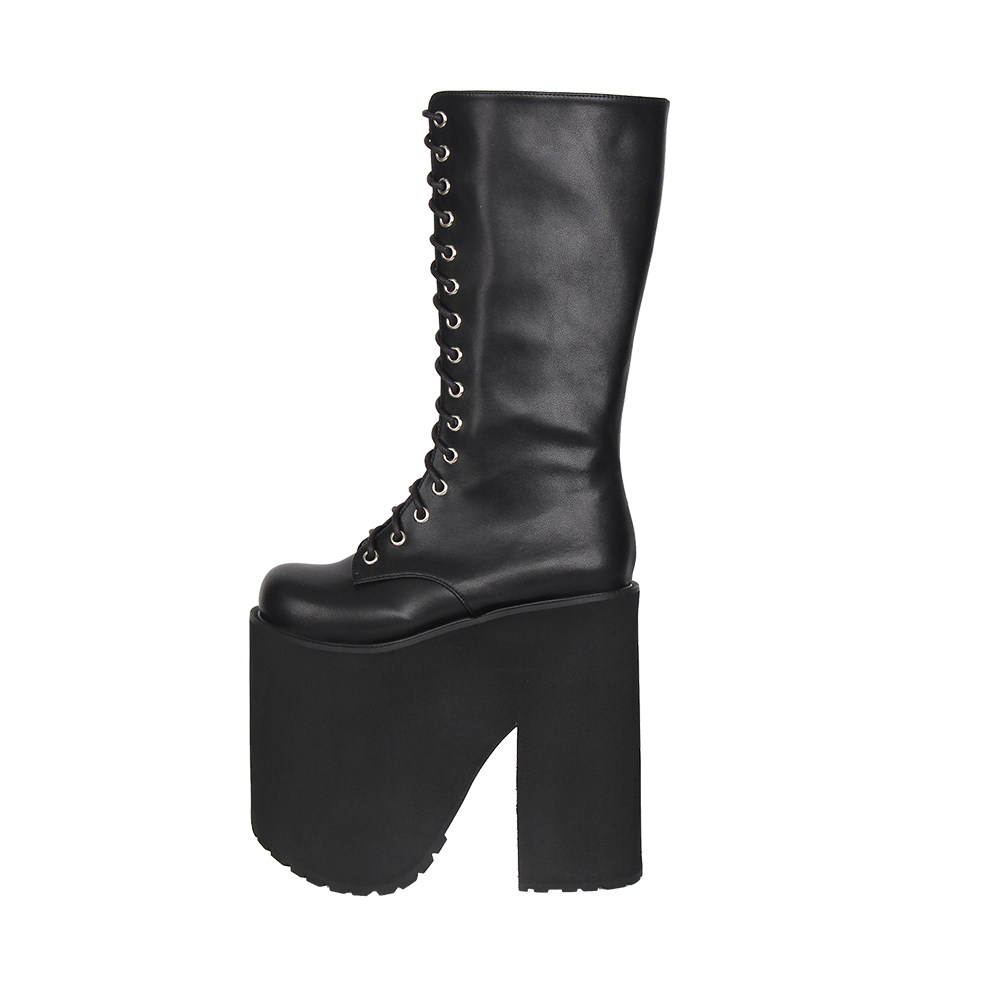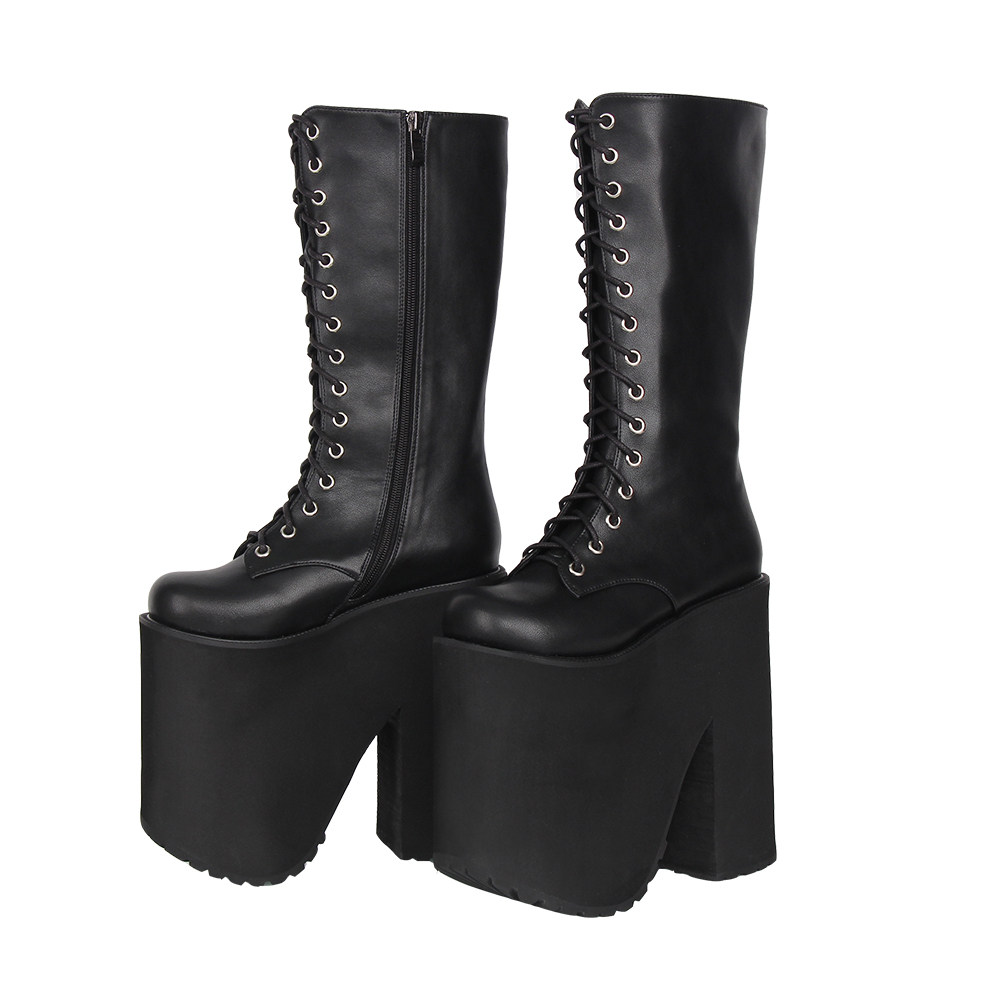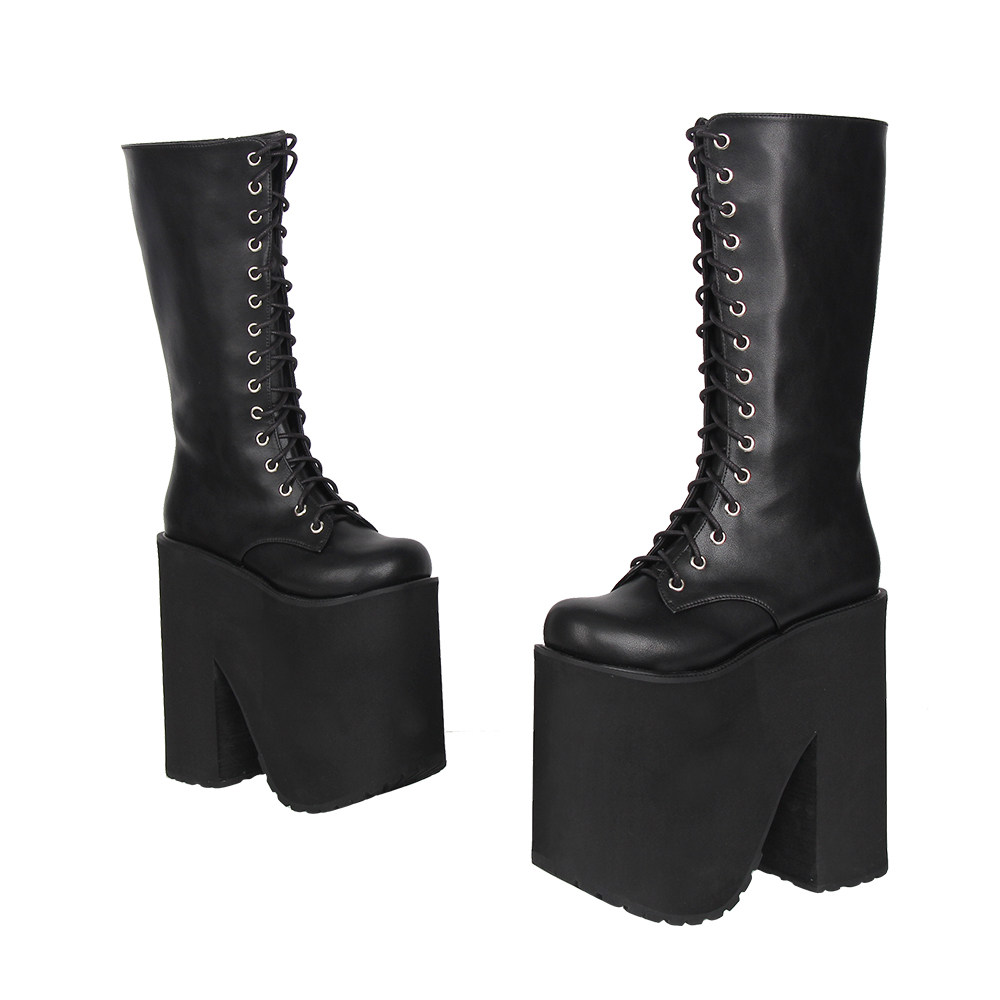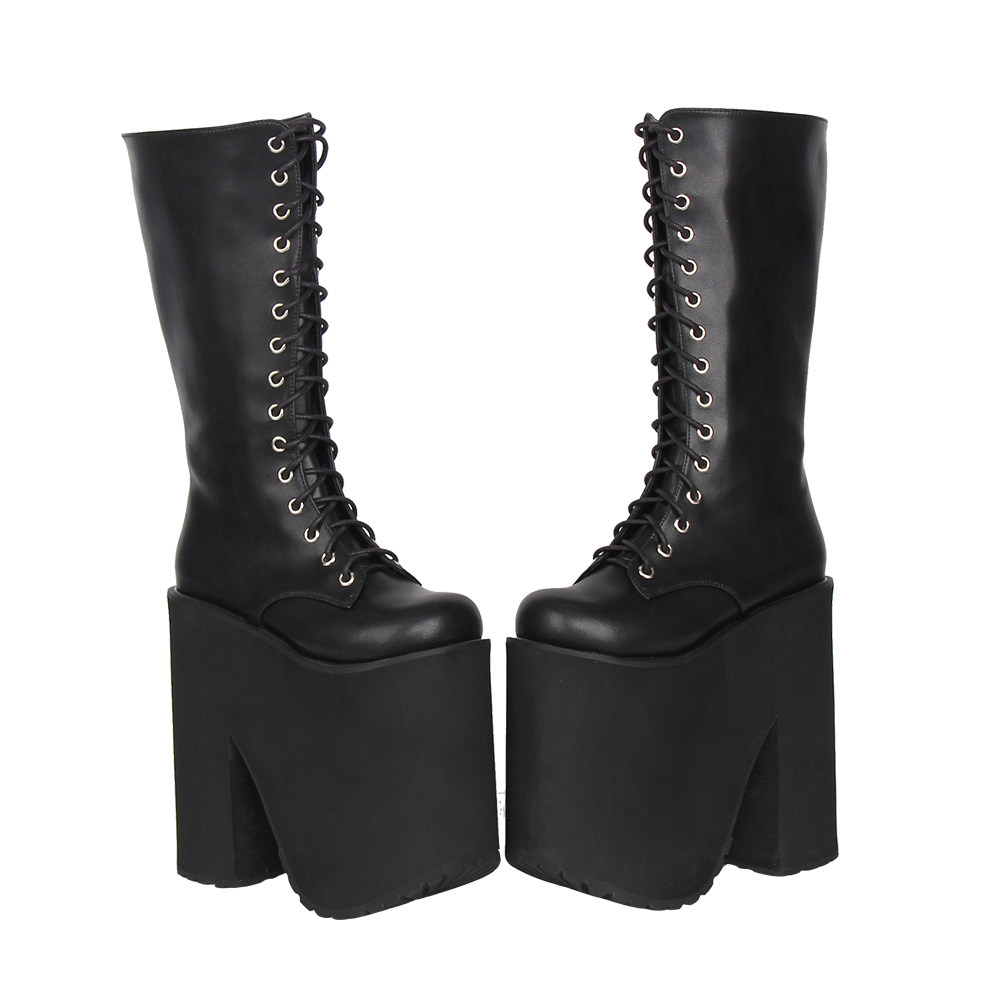 淘宝2025经典新品哥特风朋克PUNK超高跟系带厚底松糕女王靴6011改版